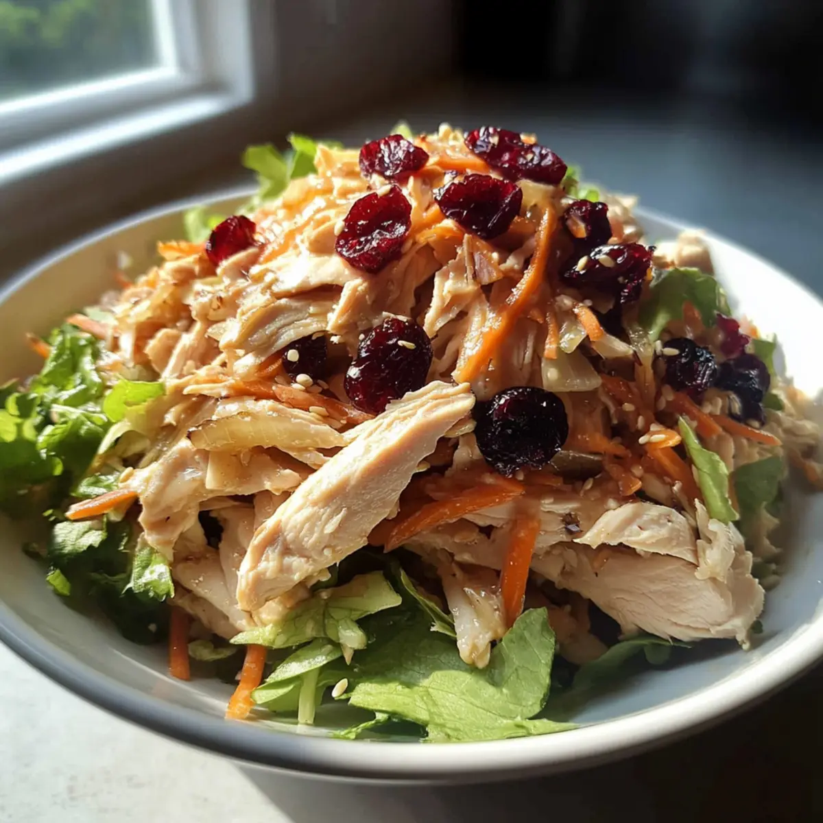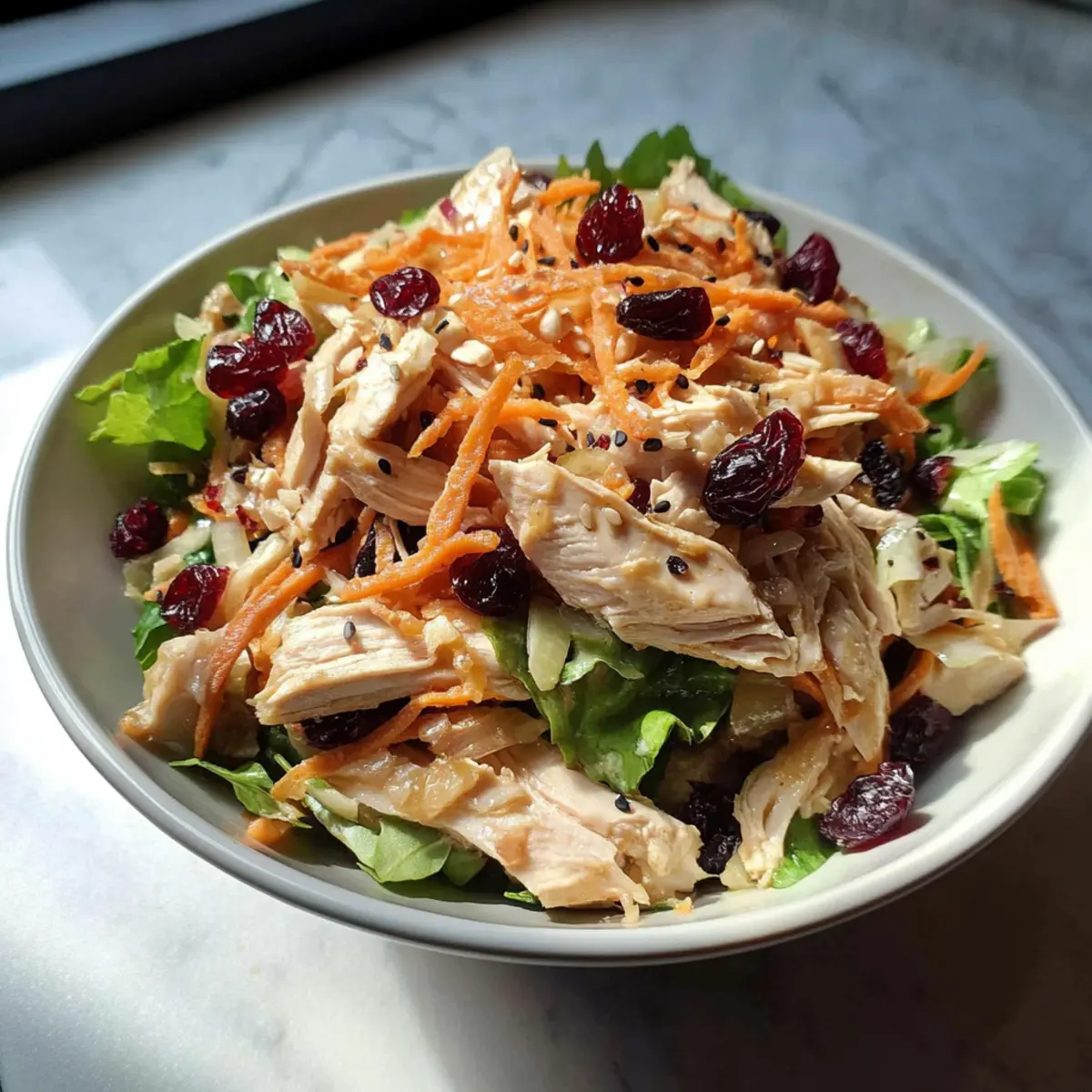 As I stood in my kitchen, the clock ticking down to lunchtime, a lightbulb moment hit me—what if I could whip up something delicious in just 15 minutes? Enter the Quick No-Cook Asian Chicken Cranberry Salad. This delightful ensemble of crunchy greens, savory chicken, and sweet cranberries not only brings a kaleidoscope of flavors to your plate but is also a breeze to prepare. Perfect for those busy weekdays, this salad checks the boxes for healthy eating and versatility, offering the kind of satisfaction that makes you feel like a culinary rockstar without the hassle. With a few simple ingredients and no cooking required, you can have a colorful meal ready to impress in no time. Are you ready to enhance your lunch game with this vibrant salad?