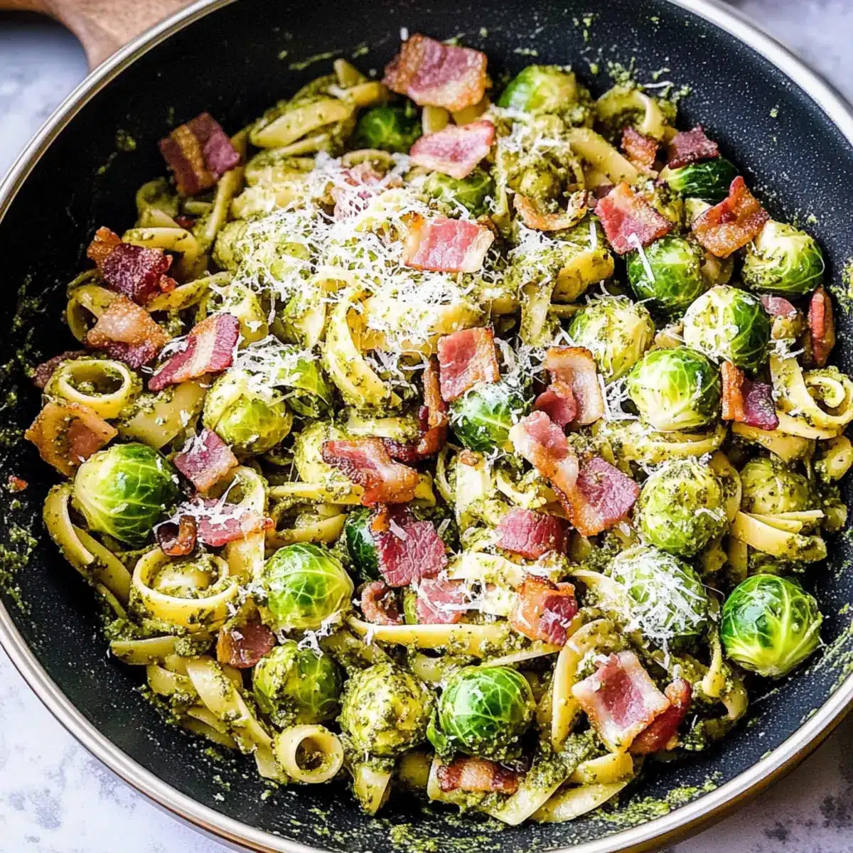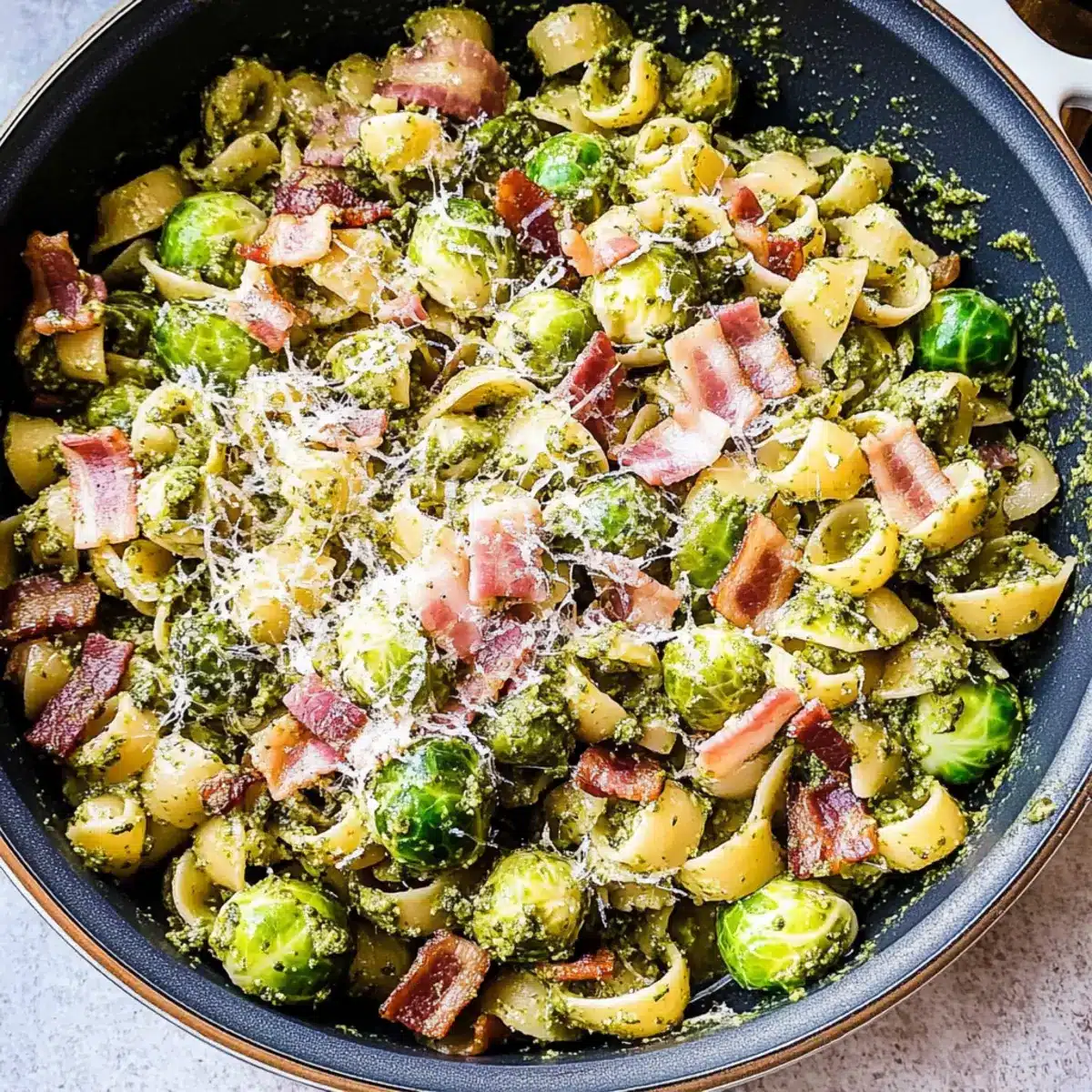 Yes! For those with dietary restrictions, this recipe can easily accommodate various needs. You can swap out regular pasta for gluten-free varieties, and if you’re going vegetarian, simply omit the bacon and sauté the Brussels sprouts in olive oil instead. Additionally, check your pesto for nut or dairy ingredients if allergies are a concern.