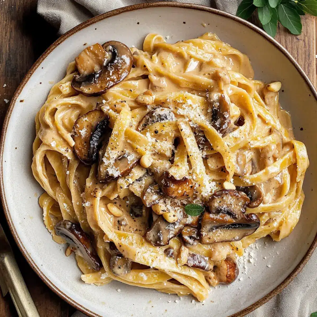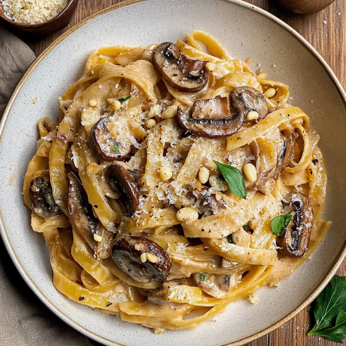 Finally, dish out the Caramelized Leek and Mushroom Gruyere Pasta into bowls. Top with ¼ cup of toasted pine nuts for an added crunch and extra layer of flavor. Serve it immediately, preferably with a side salad or crusty bread, while the dish is still warm and inviting.