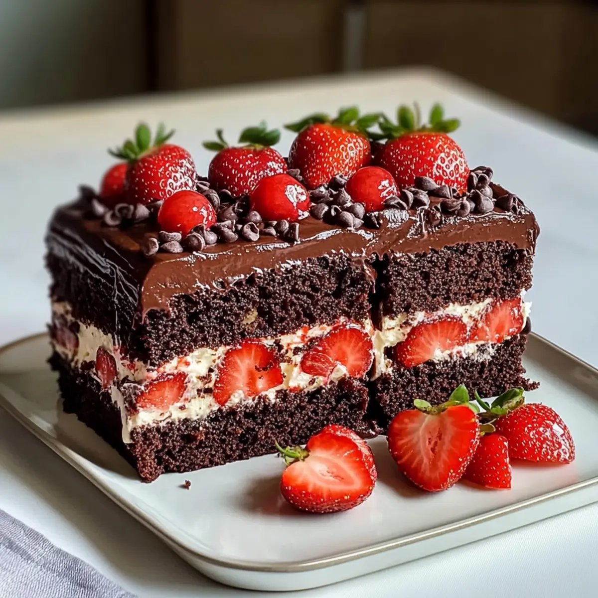 Indulge in Wet Chocolate Cake with Strawberry Filling Delight