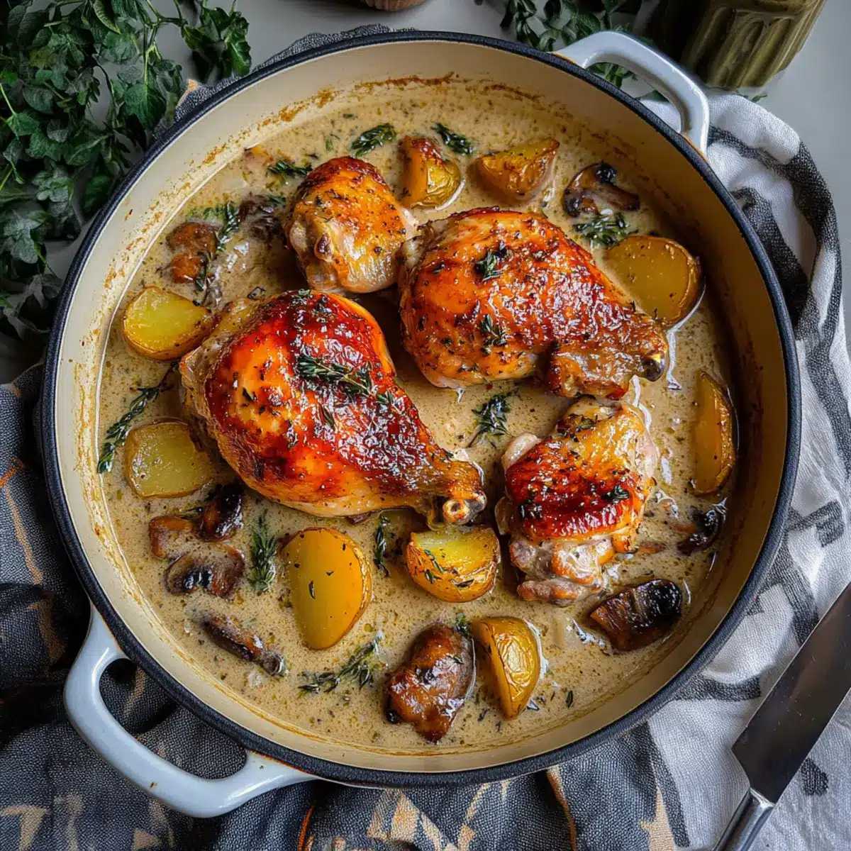 Savor Herb Roasted Chicken in Creamy White Wine Sauce Tonight
