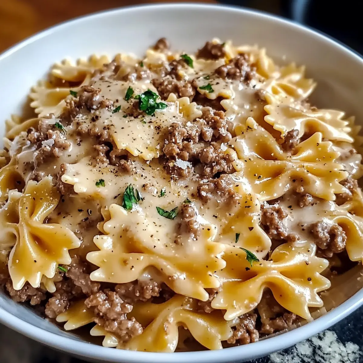 Creamy Parmesan Garlic Beef Bowtie Pasta for Cozy Nights