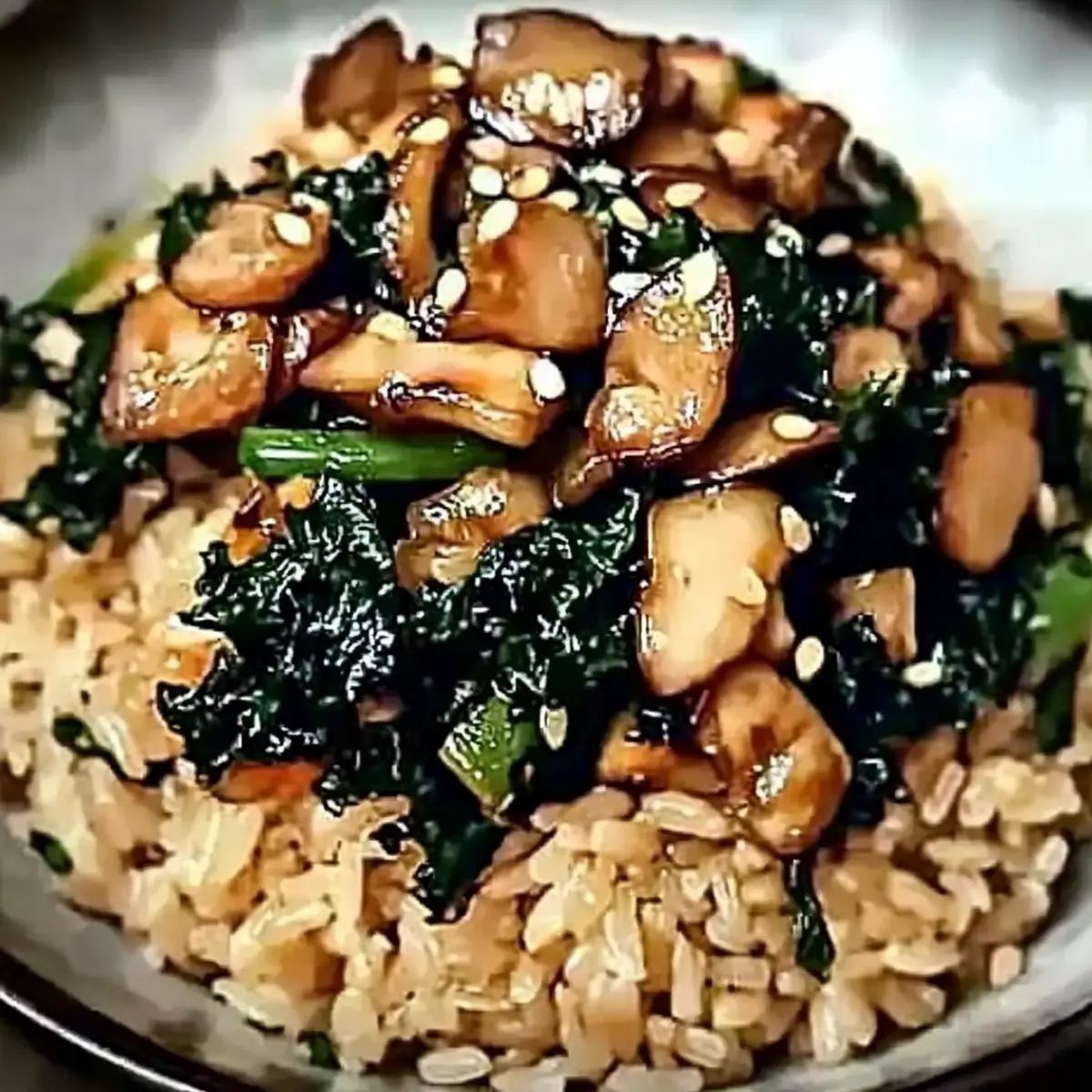 Deliciously Healthy Crispy Kale and Shiitake Fried Rice