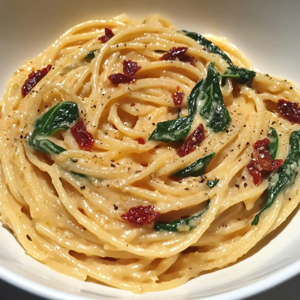 Creamy Spaghetti & Spinach with Sun-Dried Tomato Dream Sauce