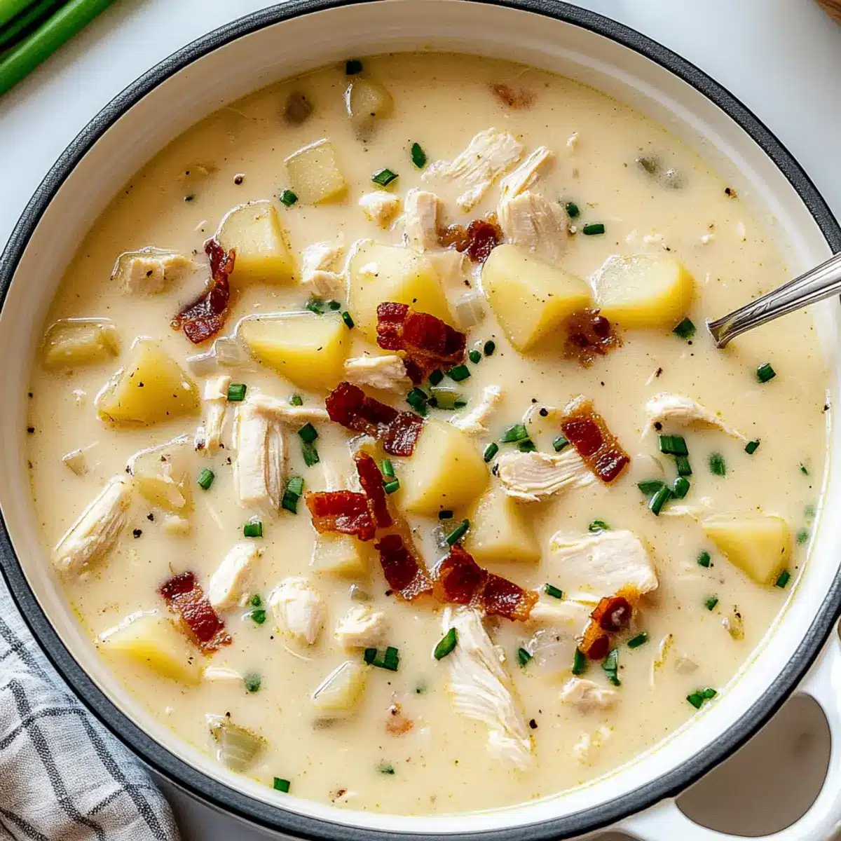 There’s nothing quite like the homey aroma of chicken simmering gently on the stove, mingling with the salty crunch of crispy bacon. As I stirred up a pot of Creamy Chicken Bacon Potato Soup, I felt a wave of nostalgia wash over me—this creamy, hearty comfort food has a way of bringing loved ones together, especially on chilly evenings. What’s not to adore? With tender Yukon gold potatoes adding a buttery richness and the delightful crunch of bacon in each spoonful, it’s the perfect dish for cozy family dinners or unexpected gatherings. Plus, it’s quick to whip up, so you can spend less time in the kitchen and more time savoring delicious moments. Are you ready to dive into a bowl of warmth and love?