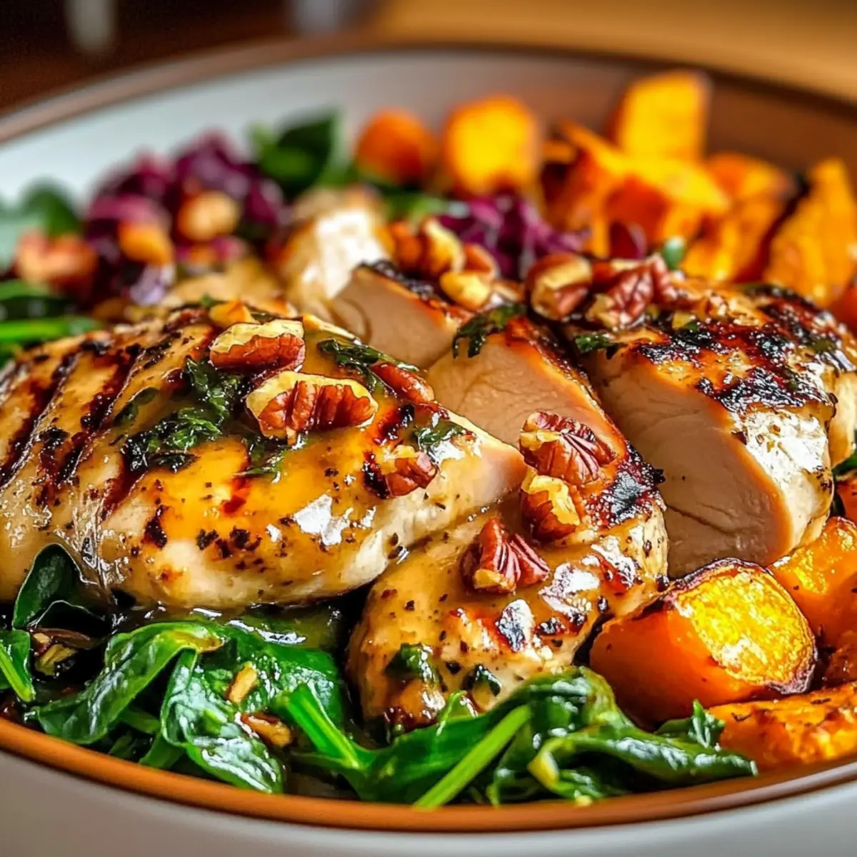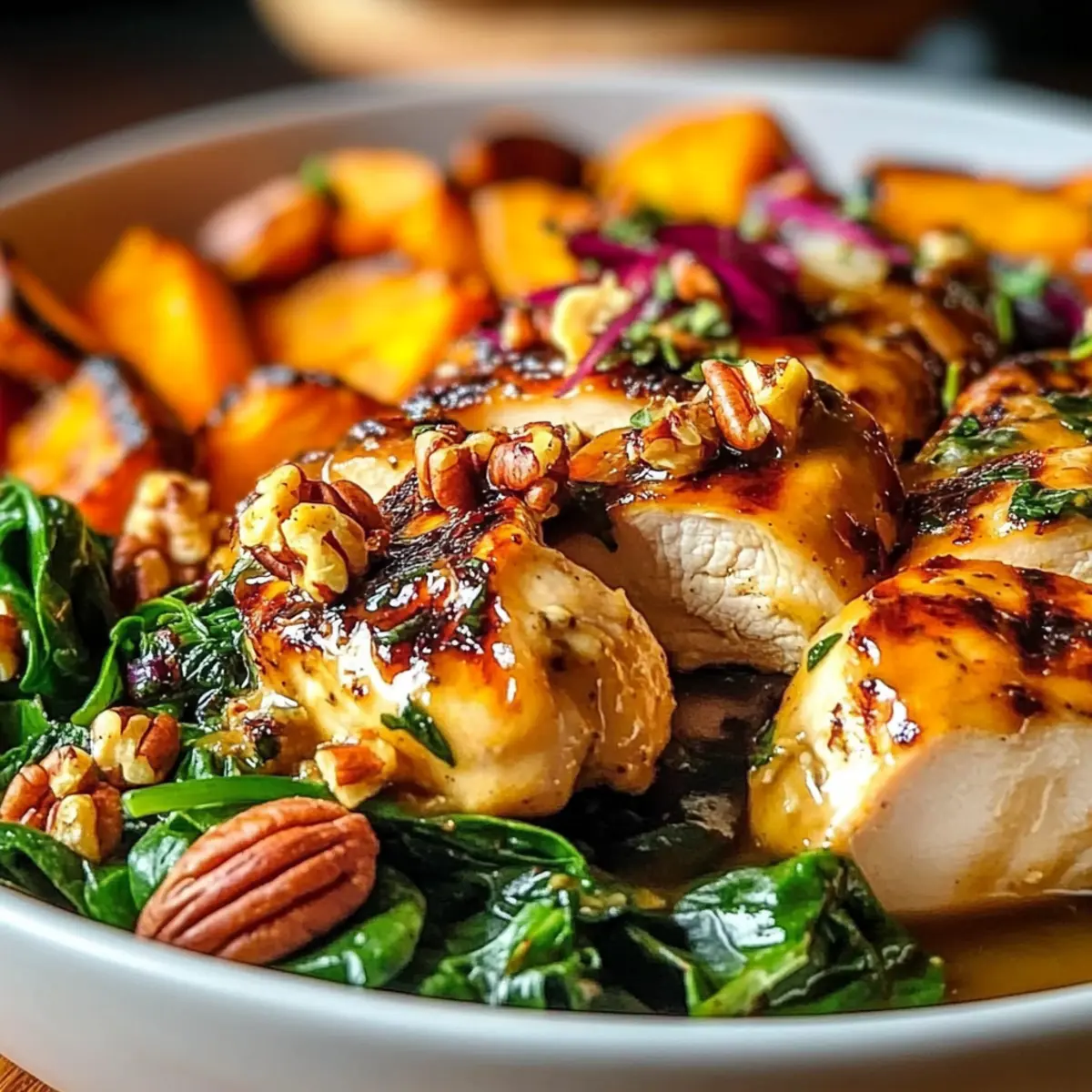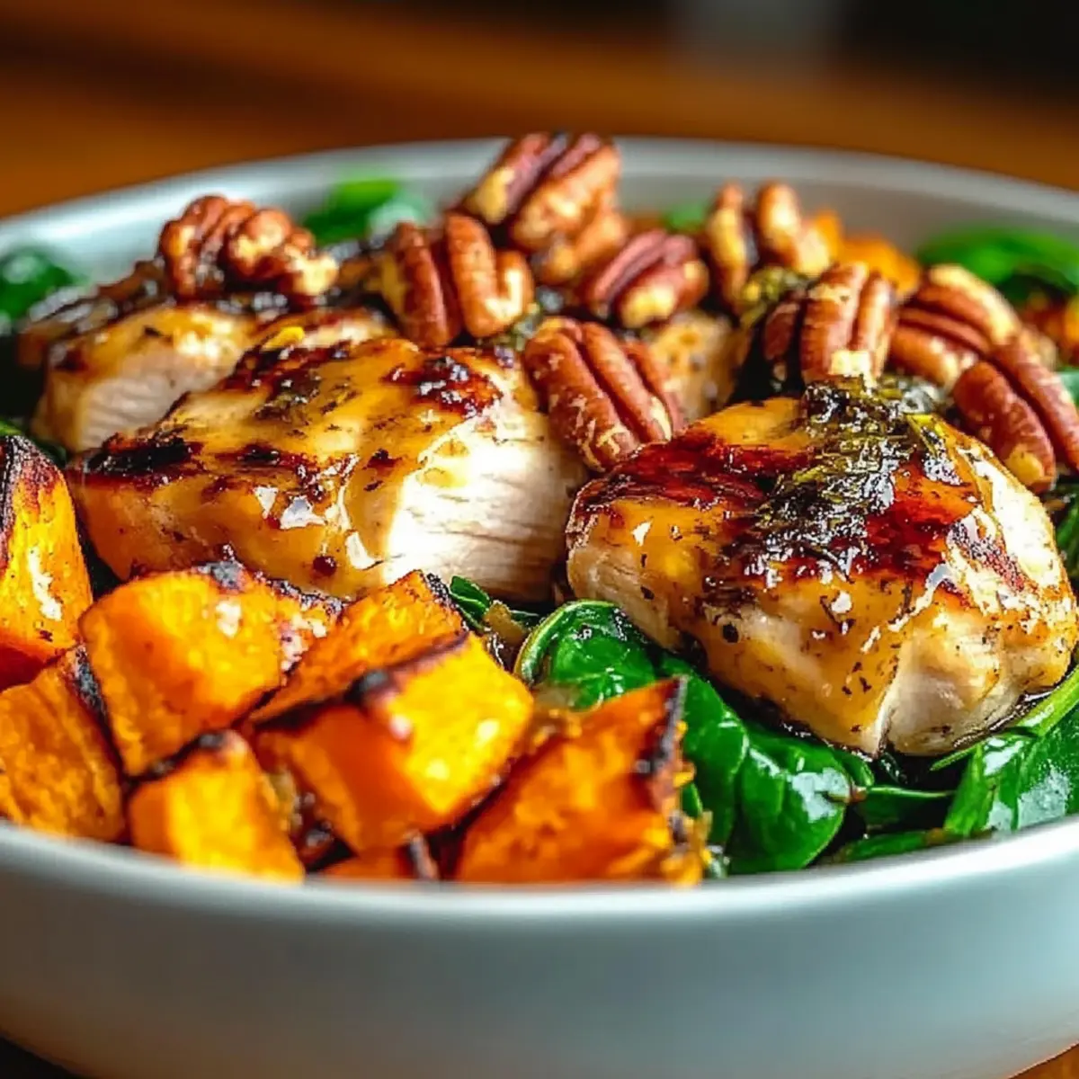 Texture Paradise: Experience the delightful contrast of tender chicken, creamy sweet potatoes, and crunchy nuts in every bite!