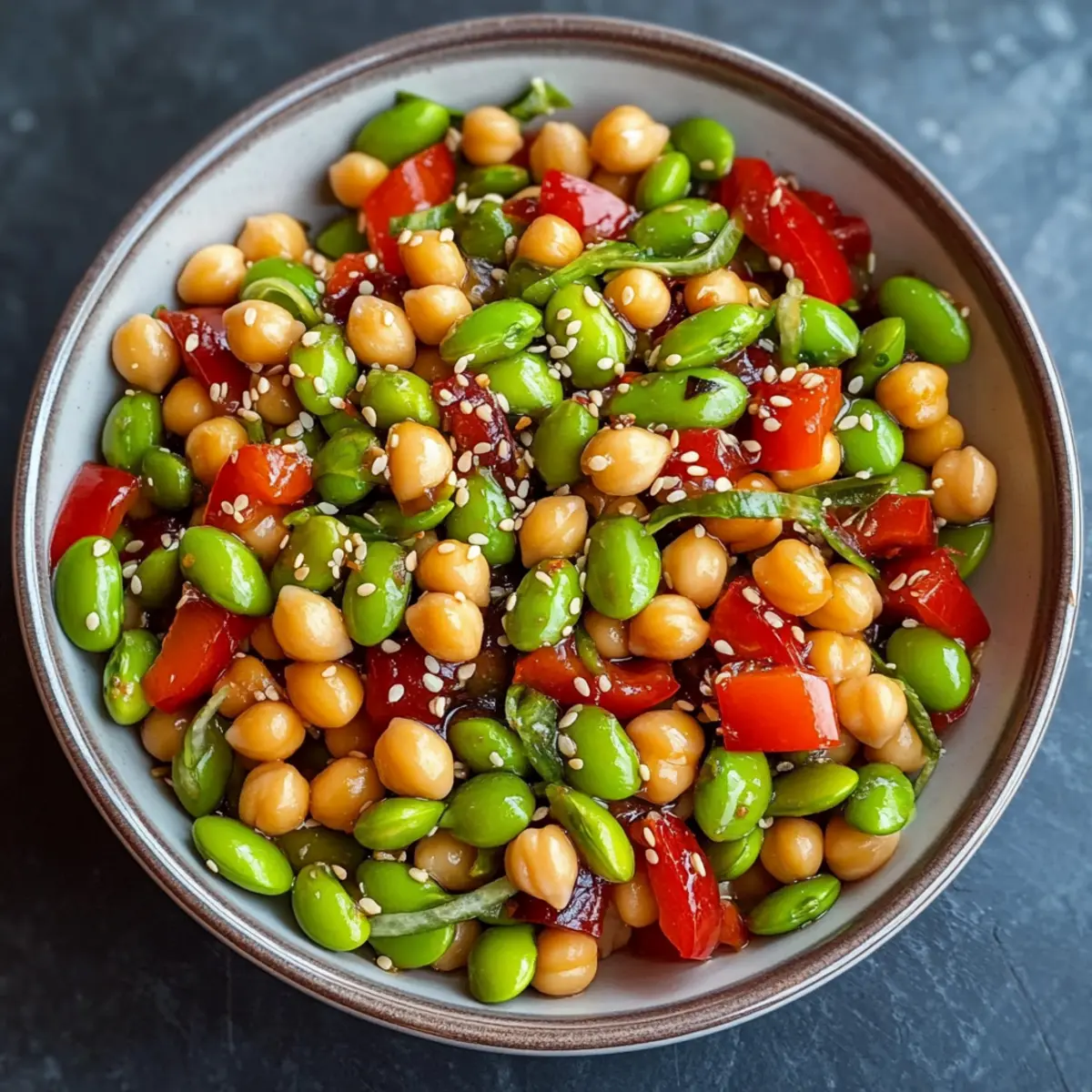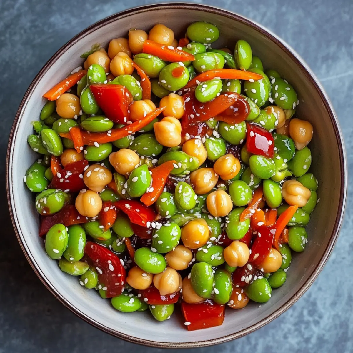 These Chickpea Edamame Salad with Ginger Sesame Vinaigrette are perfect for busy home cooks looking to save time during the week! You can prep the salad components—washed and chopped veggies, alongside the drained chickpeas and shelled edamame—up to 24 hours in advance. Store each ingredient separately in airtight containers in the refrigerator to maintain freshness. The ginger sesame vinaigrette can also be made ahead and refrigerated for up to 3 days; just give it a quick whisk before dressing the salad. When you’re ready to serve, simply combine the salad ingredients, toss them with the vinaigrette, and garnish with sesame seeds for a delicious and vibrant meal in minutes!