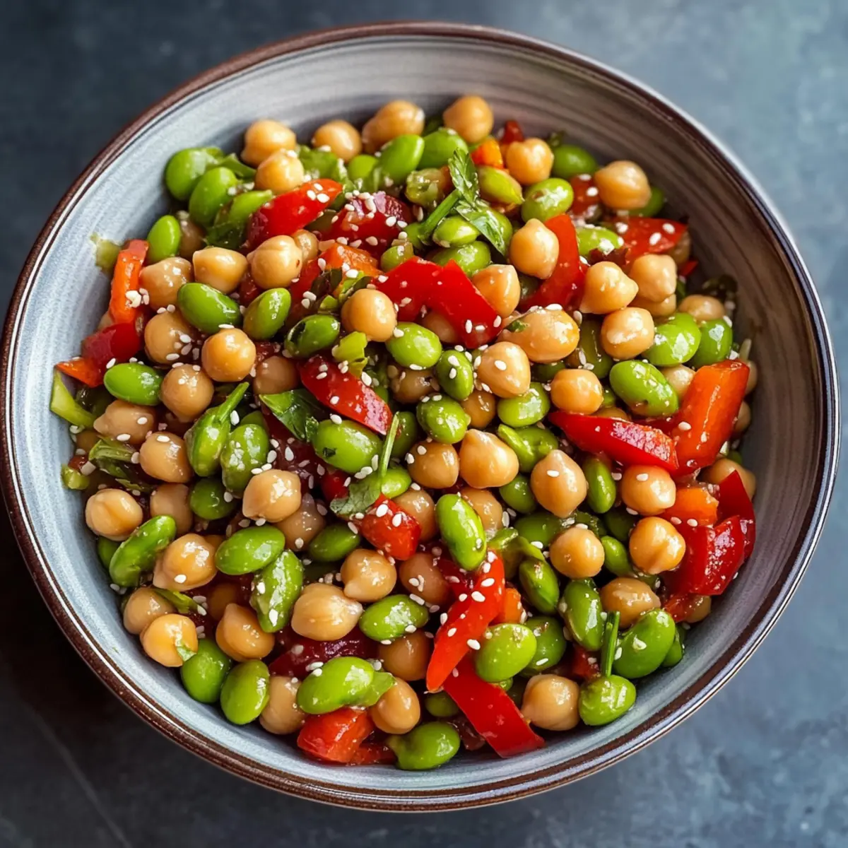 Chickpea Edamame Salad with Ginger Sesame Vinaigrette Bliss