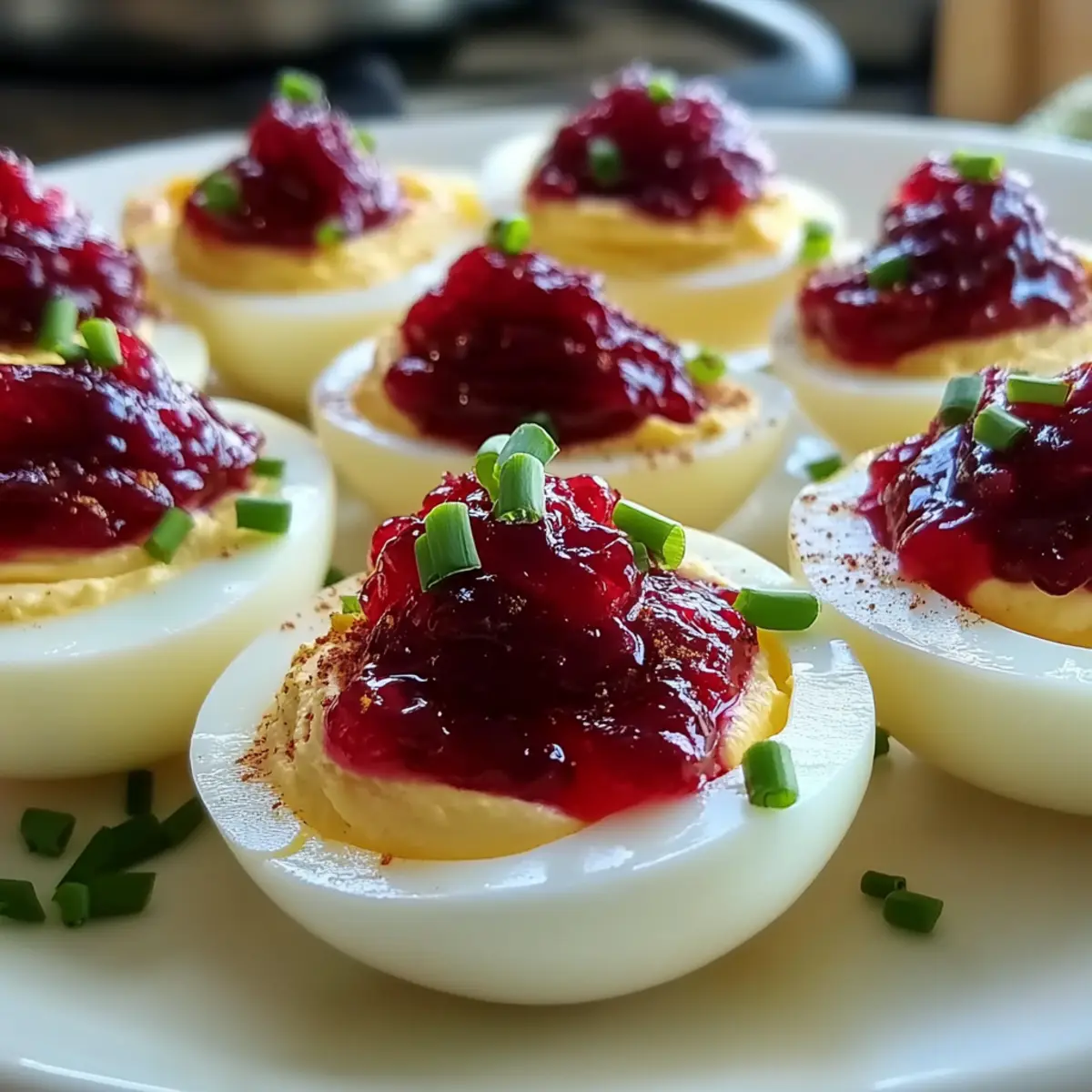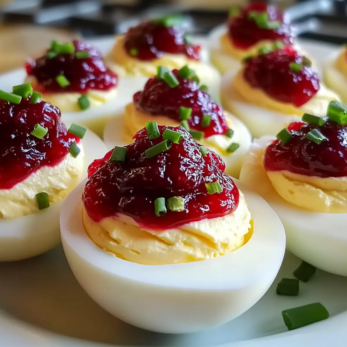 Celebrate your gatherings with these delightful Cranberry Pepper Jelly Cream Cheese Deviled Eggs, where every bite is a delicious adventure!