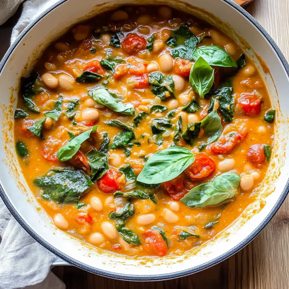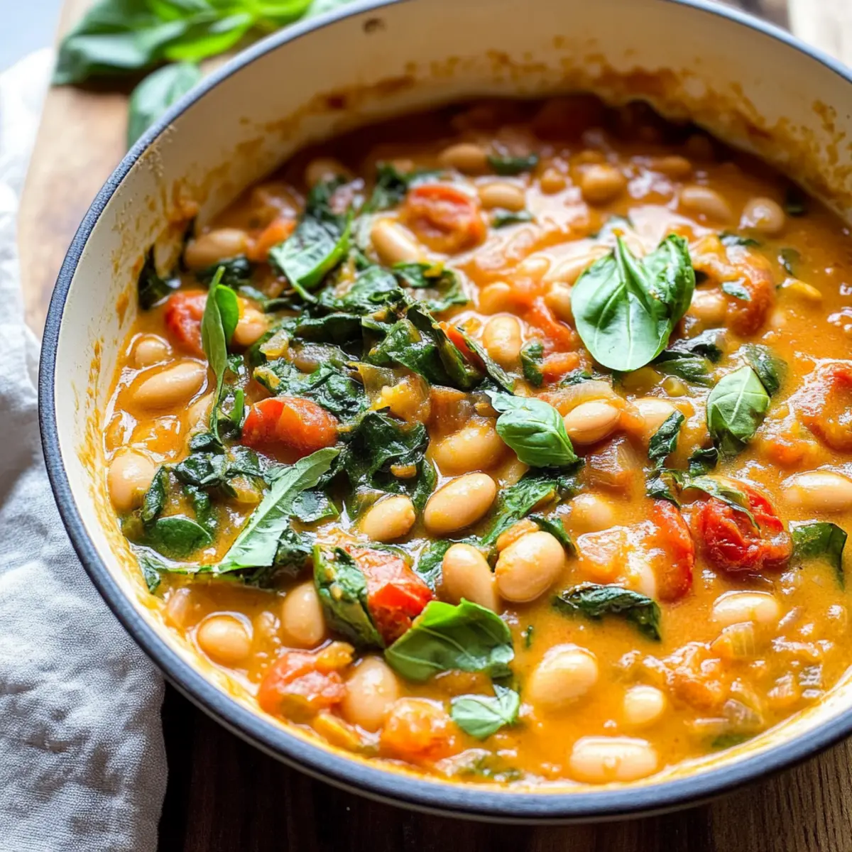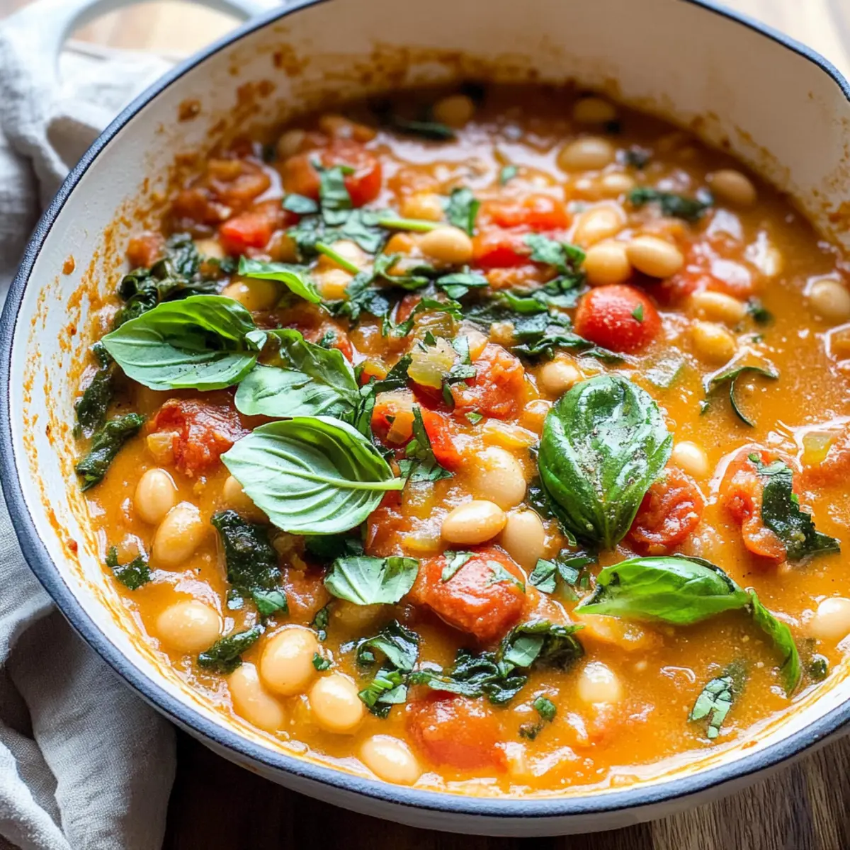 As I stirred a pot filled with vibrant colors and tantalizing aromas, the comforting warmth of nostalgia wrapped around me like a cozy blanket. Today, I’m excited to share my delightful Creamy Tomato White Bean Stew, a plant-based masterpiece that comes together in just 25 minutes. Perfect for those busy weeknights, this one-pan wonder not only brings a rich, creamy texture to your bowl but also packs a nutritious punch with protein-rich white beans and a medley of fresh greens. Whether you’re a seasoned chef or a kitchen novice, this quick meal will elevate your dinner game while giving you the satisfaction of enjoying something homemade. Are you ready to embrace a dish that brings both health and heart to your table?