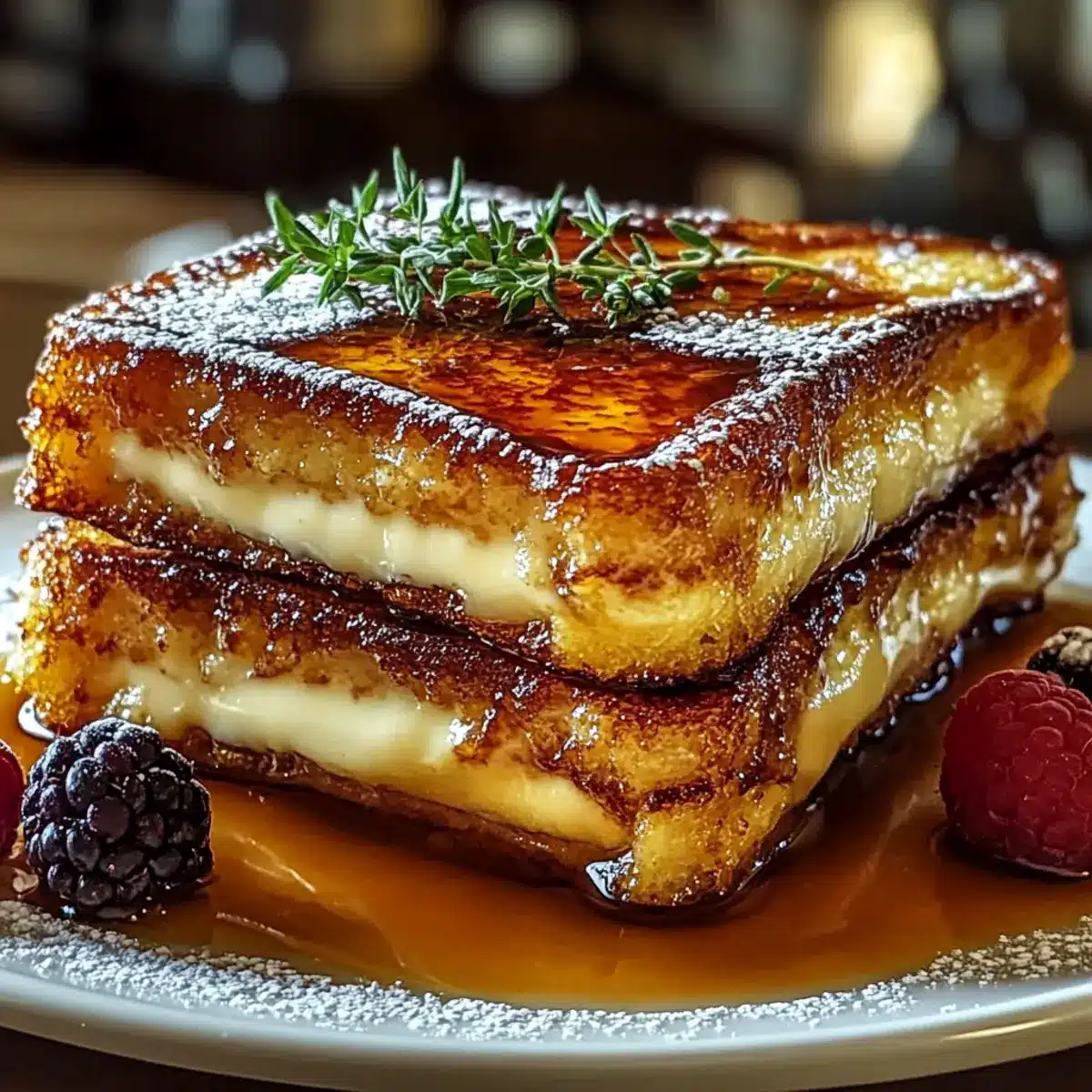 Allow the Crème Brûlée French Toast to cool slightly for easier serving. Top with fresh berries, a dusting of powdered sugar, and a drizzle of maple syrup for an extra touch of sweetness. This dish is not only visually appealing but promises an indulgent flavor profile that will delight your guests!