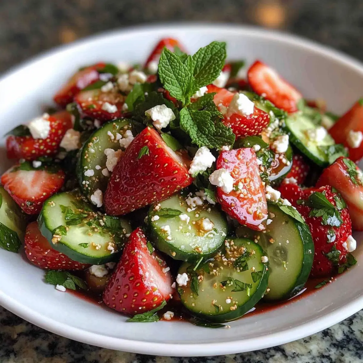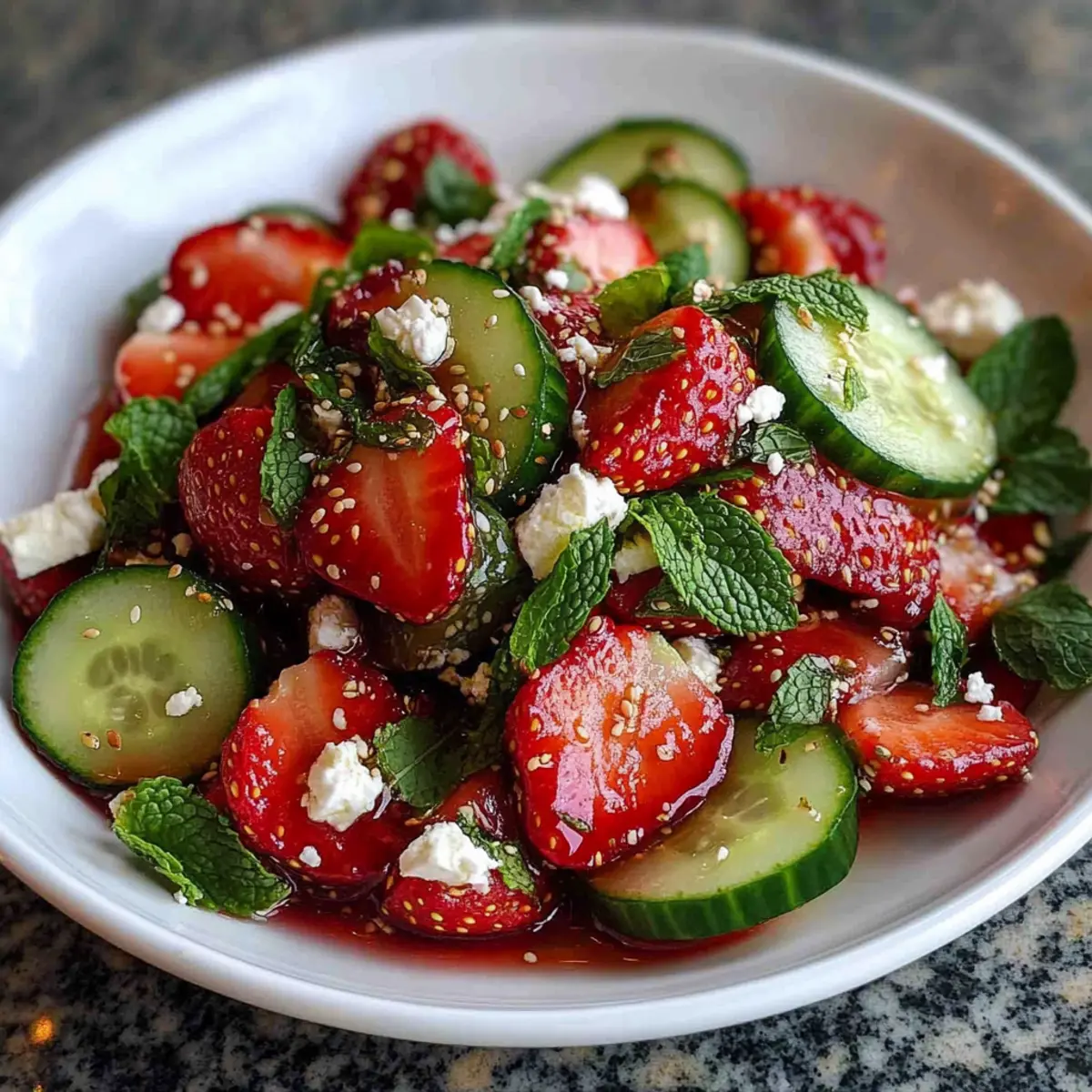 Create this delightful Cucumber Strawberry Salad quickly and enjoy the vibrant taste of summer!