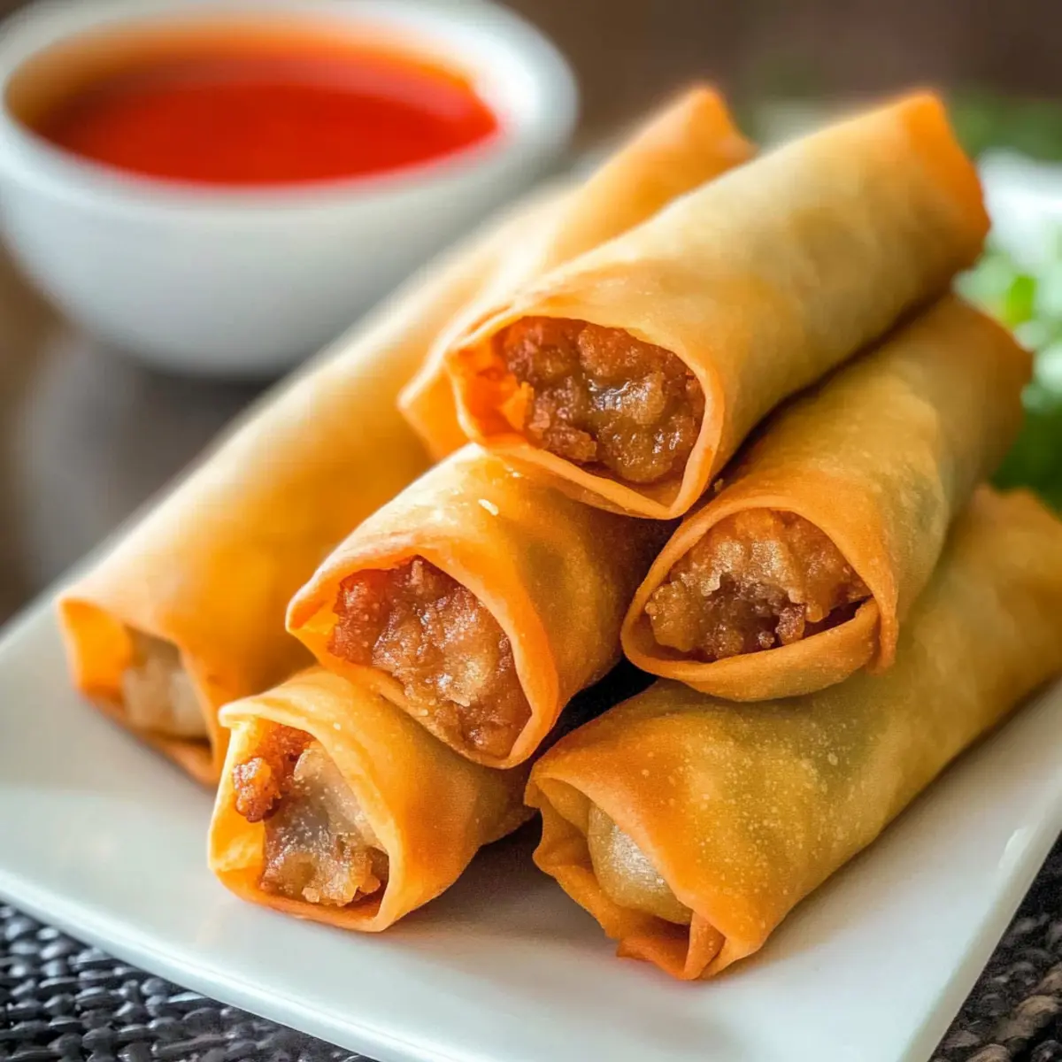 Sweet Chili Sauce: This sweet and tangy dip adds a delightful contrast that complements the savory filling of the egg rolls, enhancing each crunchy bite.