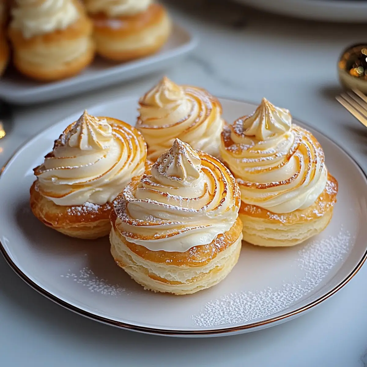 Mini Puffs: Create bite-sized variants by piping smaller rounds of pastry for perfect little treats that are easy to grab and pop in your mouth. Perfect for holiday gatherings where you want to offer an assortment of desserts.