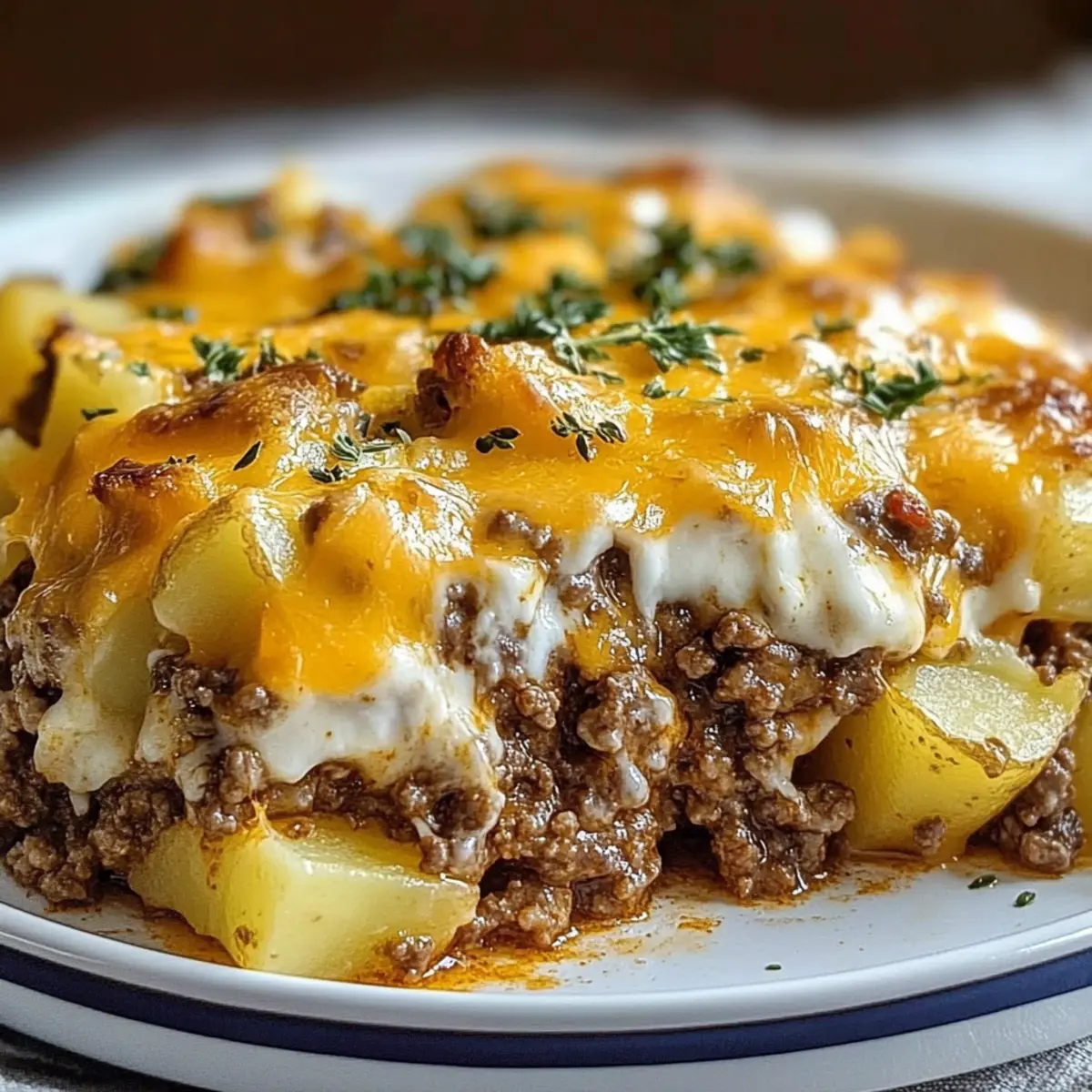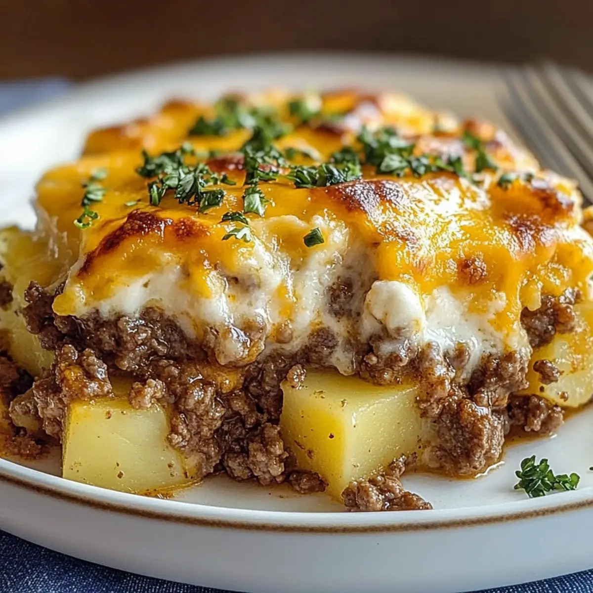 As the wind chills the air outside, I can’t help but crave a warm, satisfying meal that wraps me in a cozy embrace. Enter my Hearty Ground Beef and Potatoes Casserole—a dish that transforms simple ingredients into a hearty comfort food classic. With tender diced potatoes nestled alongside seasoned ground beef and topped with gooey cheddar cheese, this casserole is perfect for busy weeknights or a family gathering. Not only does it take just a short time to prepare, but it also serves as an excellent make-ahead meal that can be popped in the oven when needed. Plus, with plenty of options for ingredient substitutions, you can tailor it to fit your taste. Who says comfort food can’t be flexible? Ready to dig in and enjoy a slice of this delightful dish? Let’s get cooking!