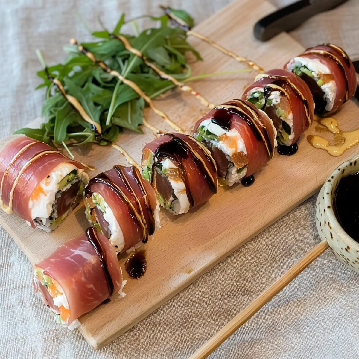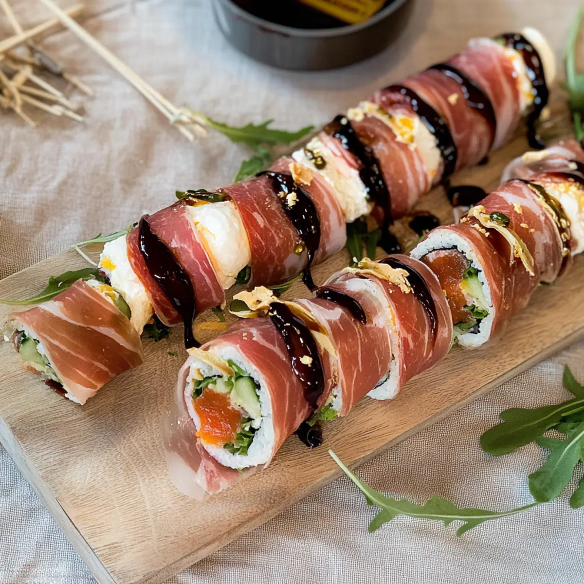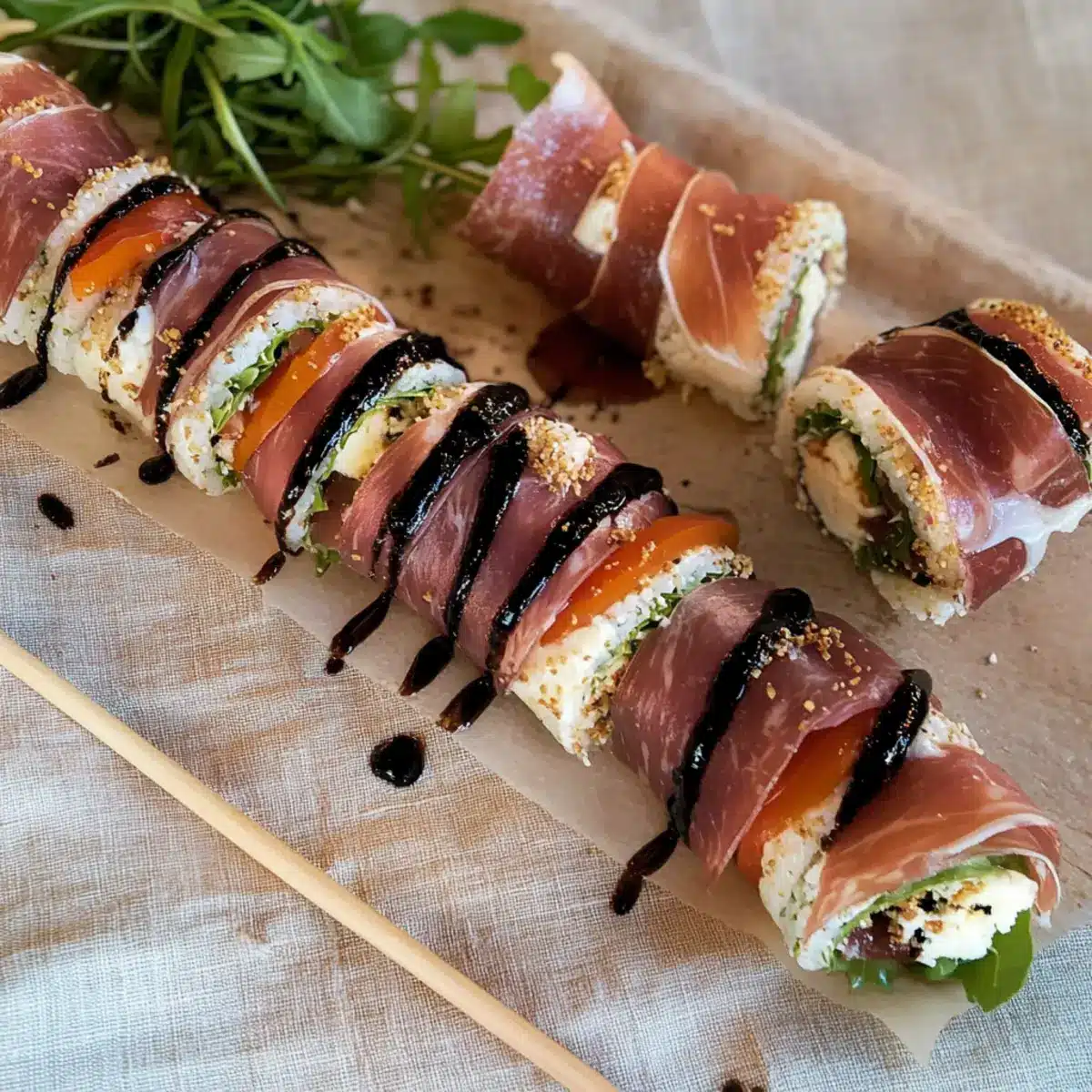 Sushi Rice: Roll everything up in sushi rice instead of prosciutto for a more traditional sushi feel. This swap creates a fusion of Italian and Japanese flavors, leaving your guests curious for more.