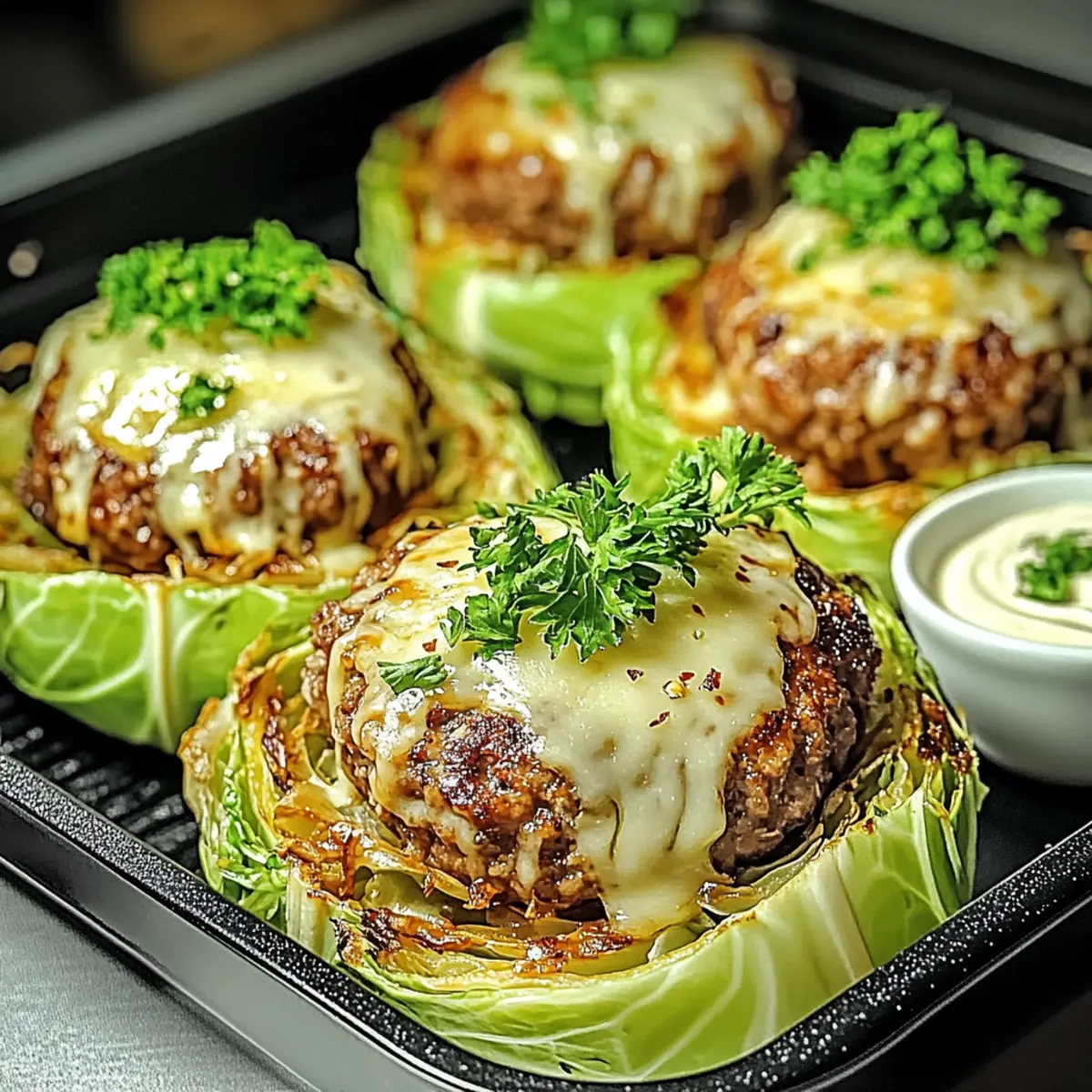 Once broiled, take the Oven-Baked Cabbage Burgers out of the oven and let them sit for a minute. For a lovely presentation, garnish with fresh parsley if desired, and serve alongside your favorite dipping sauces. Enjoy the delightful crunch and savory flavor of these burgers that bring joy to any meal!