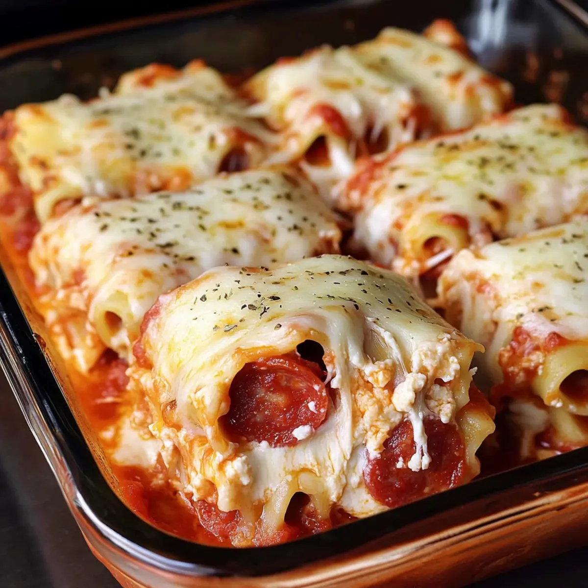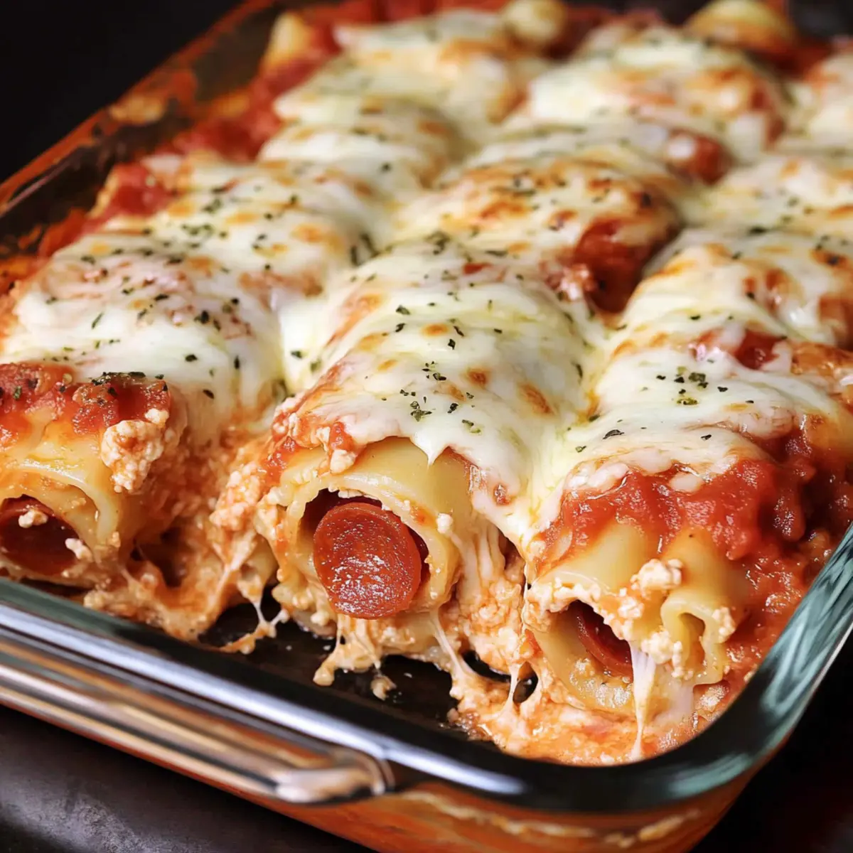- Assemble the Roll Ups: Spread ricotta mixture on each noodle, layer pepperoni, and roll tightly. Place seam-side down.