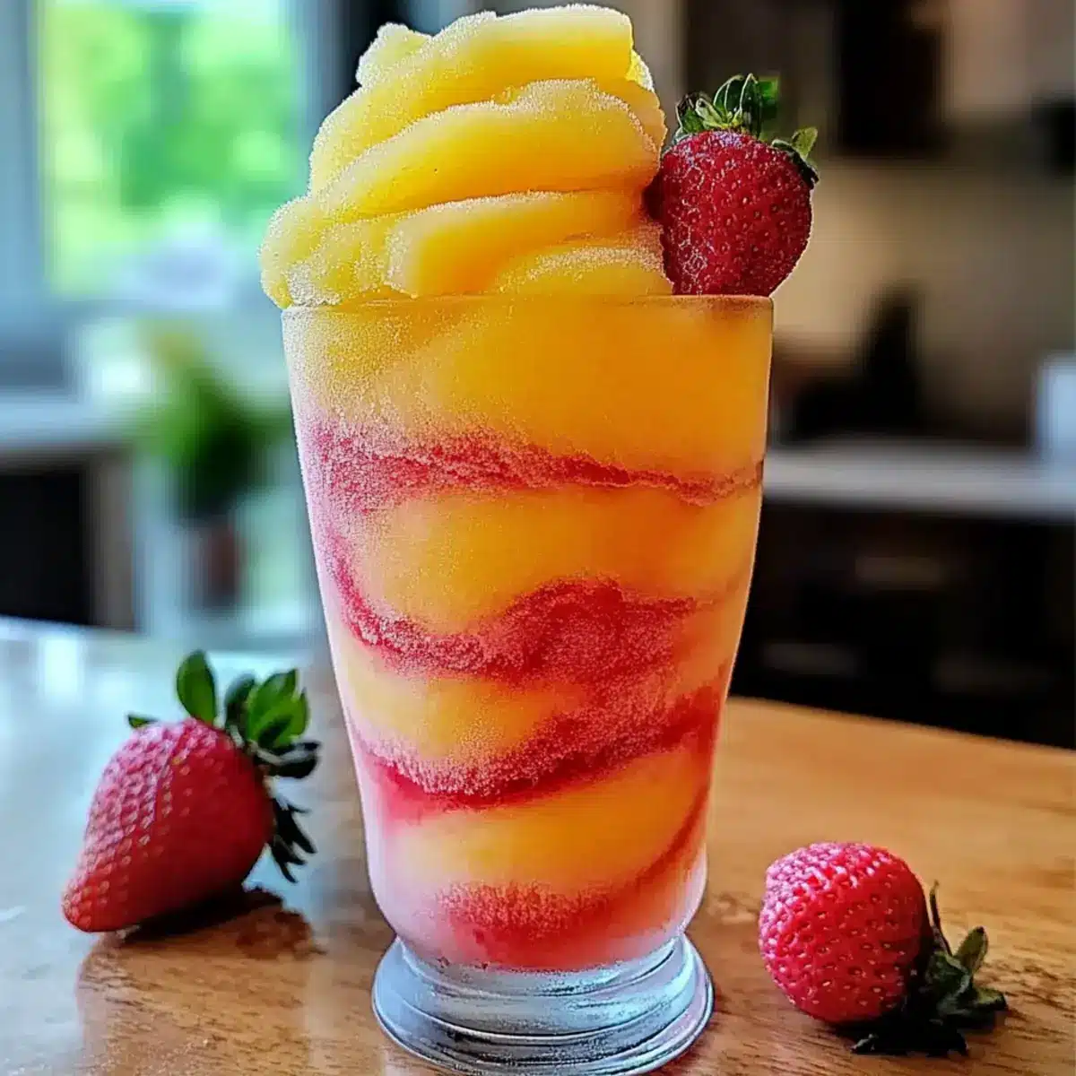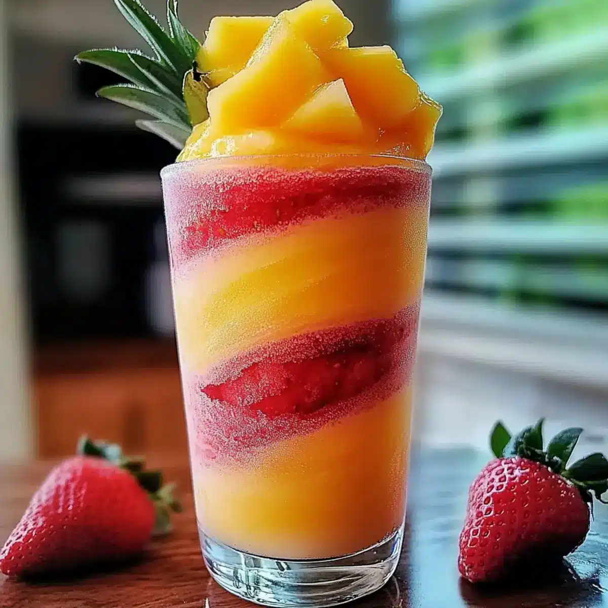 Use fresh pineapple and strawberries, but add ice to keep the slushy texture. Just be mindful, as too much ice might dilute the fruit’s vibrant flavors. -
