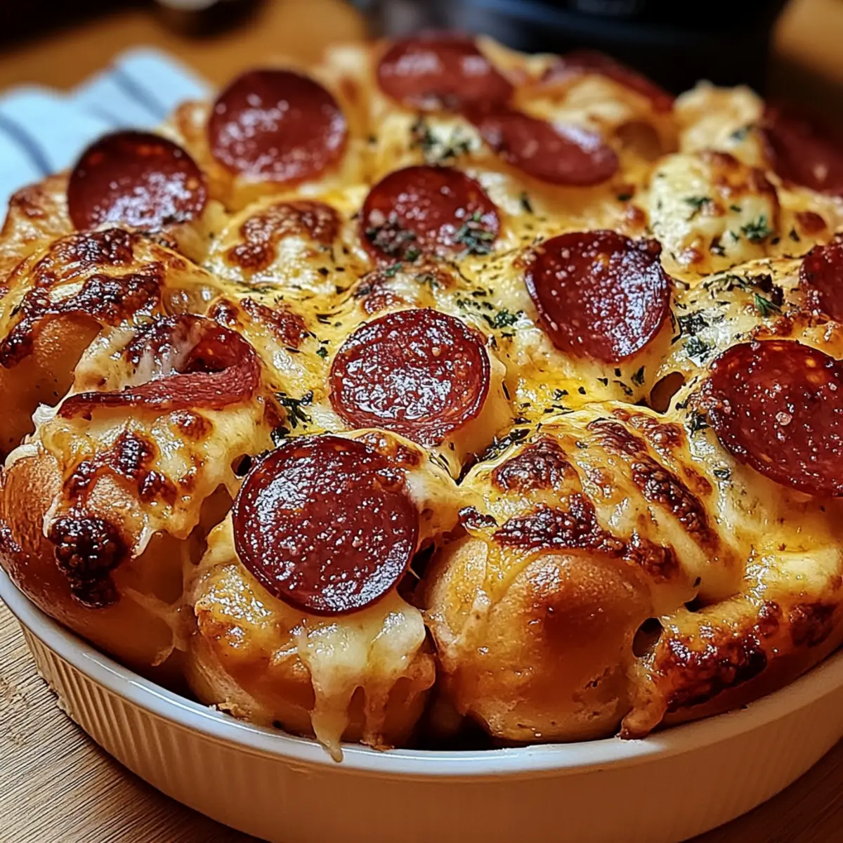 • Pepperoni Slices – The classic pizza topping that infuses a spicy, meaty flavor into the mix. Substitution: Consider using sausage crumbles, diced ham, or even olives and mushrooms for a vegetarian touch.