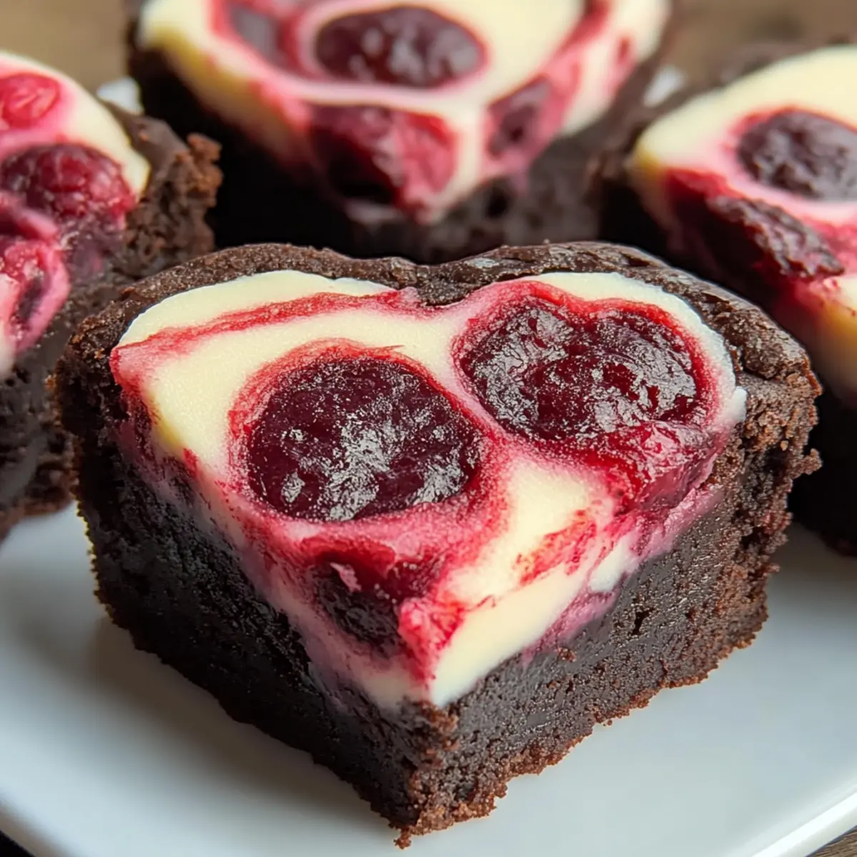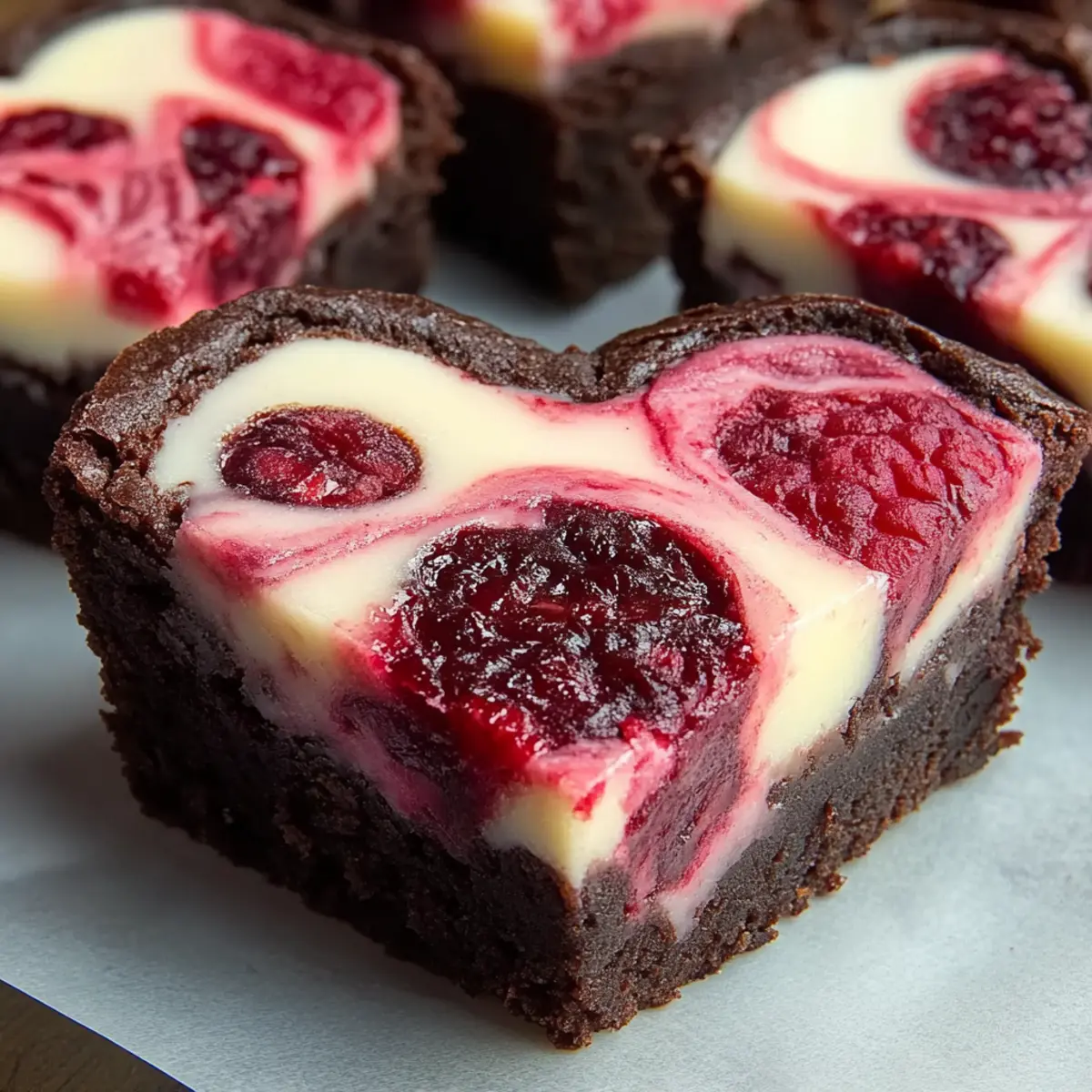 As the sweet aroma of melting chocolate fills the kitchen, I can hardly contain my excitement—these Heart-Shaped Brownies with Raspberry Swirl & Cheesecake are a true labor of love. This recipe transforms the classic brownie into a indulgent treat that balances rich, fudgy chocolate with bright bursts of tangy raspberry and a smooth cheesecake topping. Not only do these little delights delight the taste buds, but their adorable shape adds a romantic charm, perfect for sharing with someone special or simply indulging yourself. They come together quickly, making them an effortless yet impressive dessert option for any occasion. Ready to dive into a world of chocolatey bliss? Let’s whip up a batch that’s sure to warm your heart!