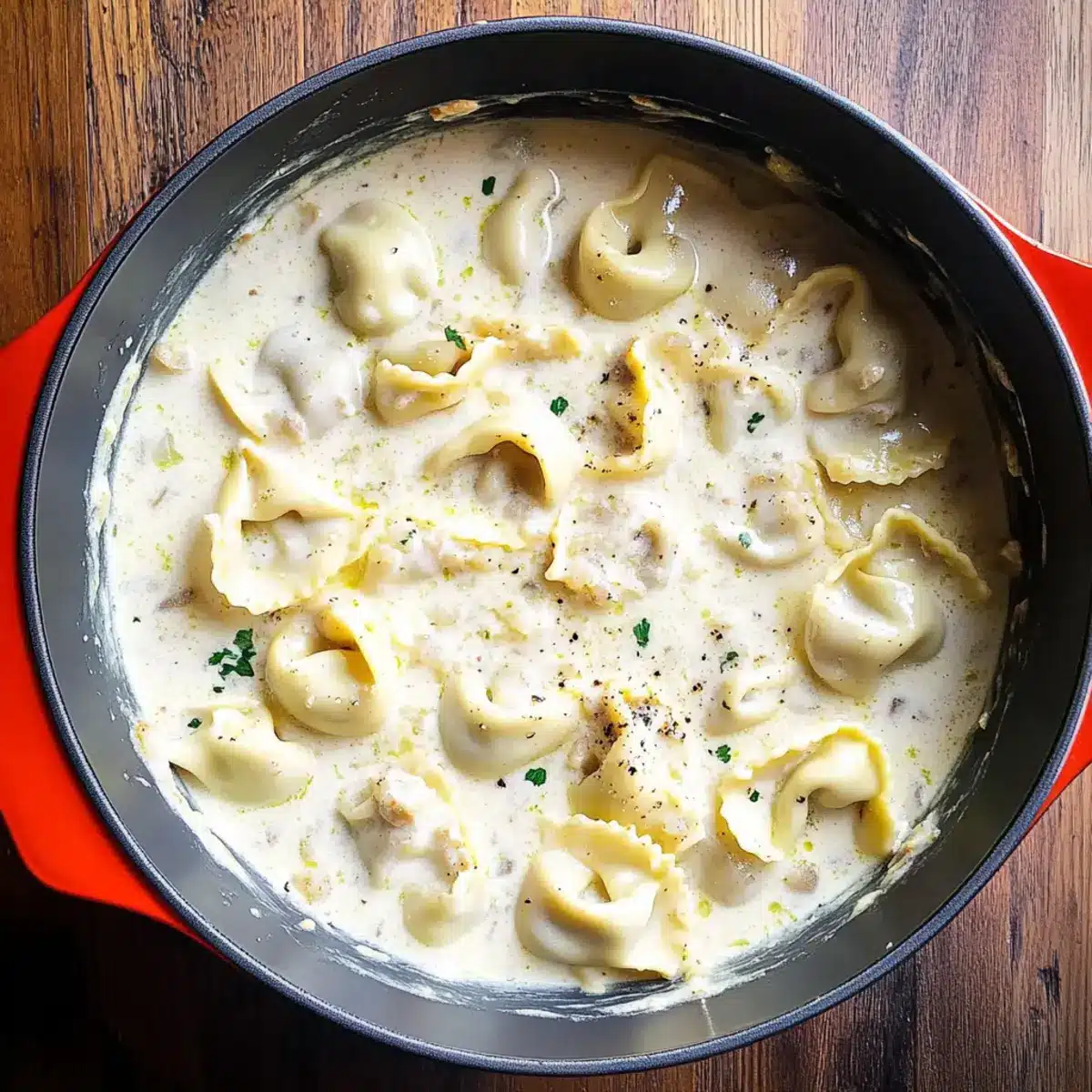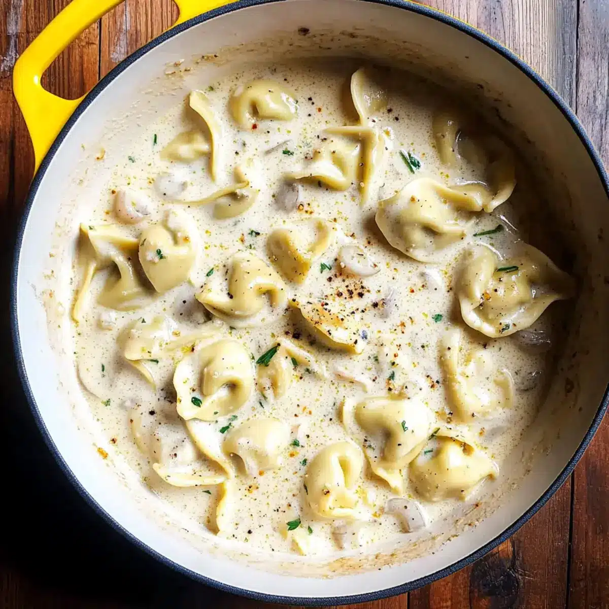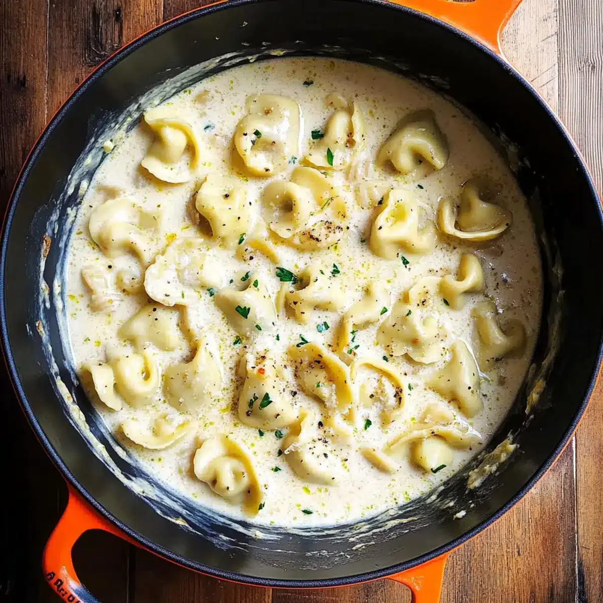 - Plate the creamy tortellini immediately and garnish with chopped parsley.