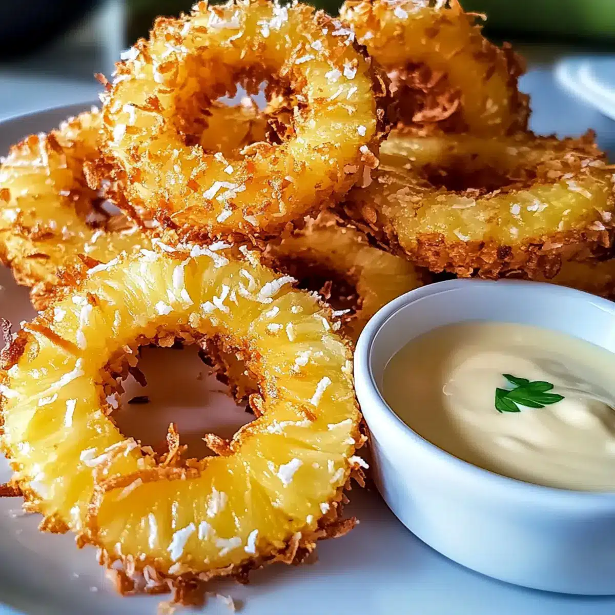 - Plate the fried pineapple and serve warm with the creamy dipping sauce on the side.