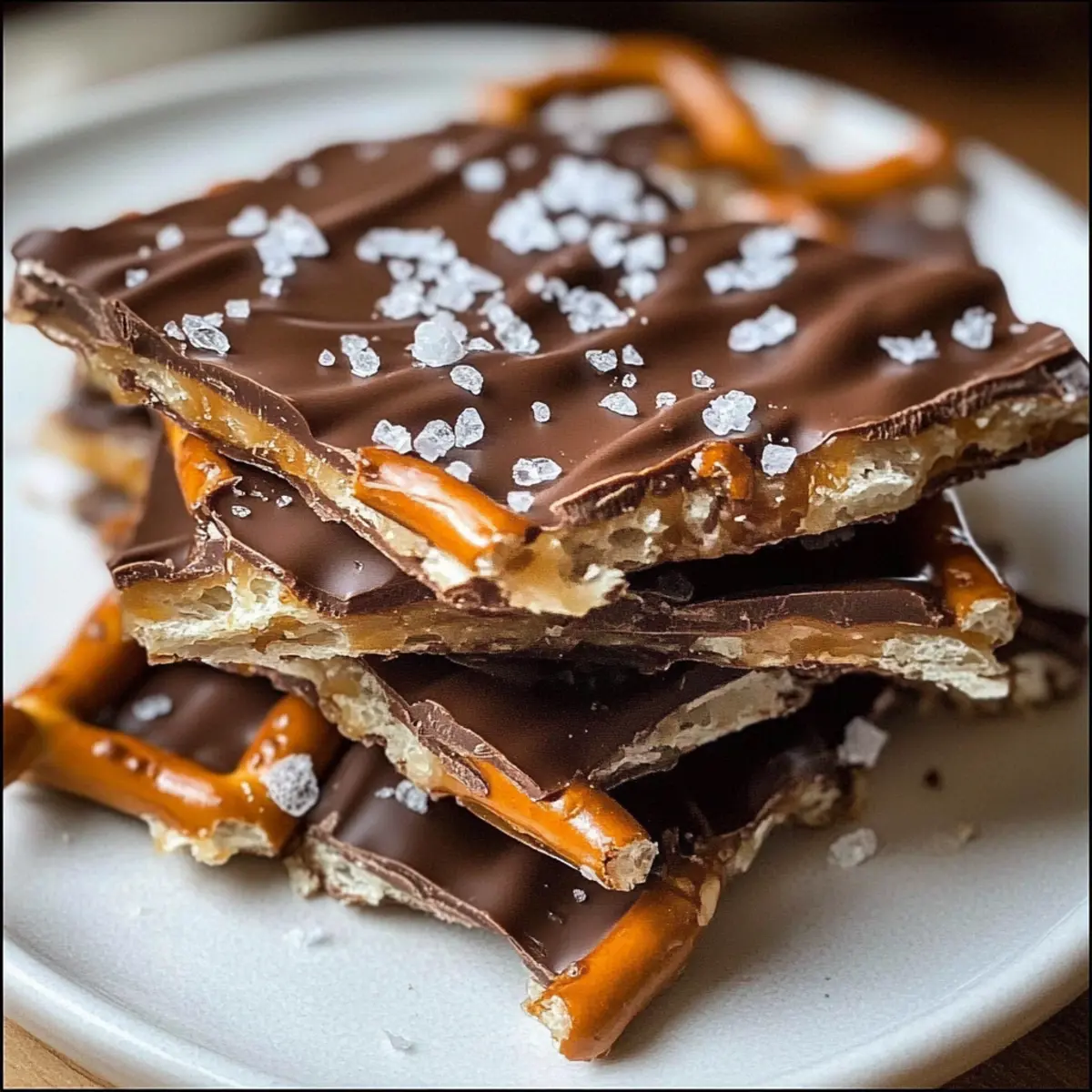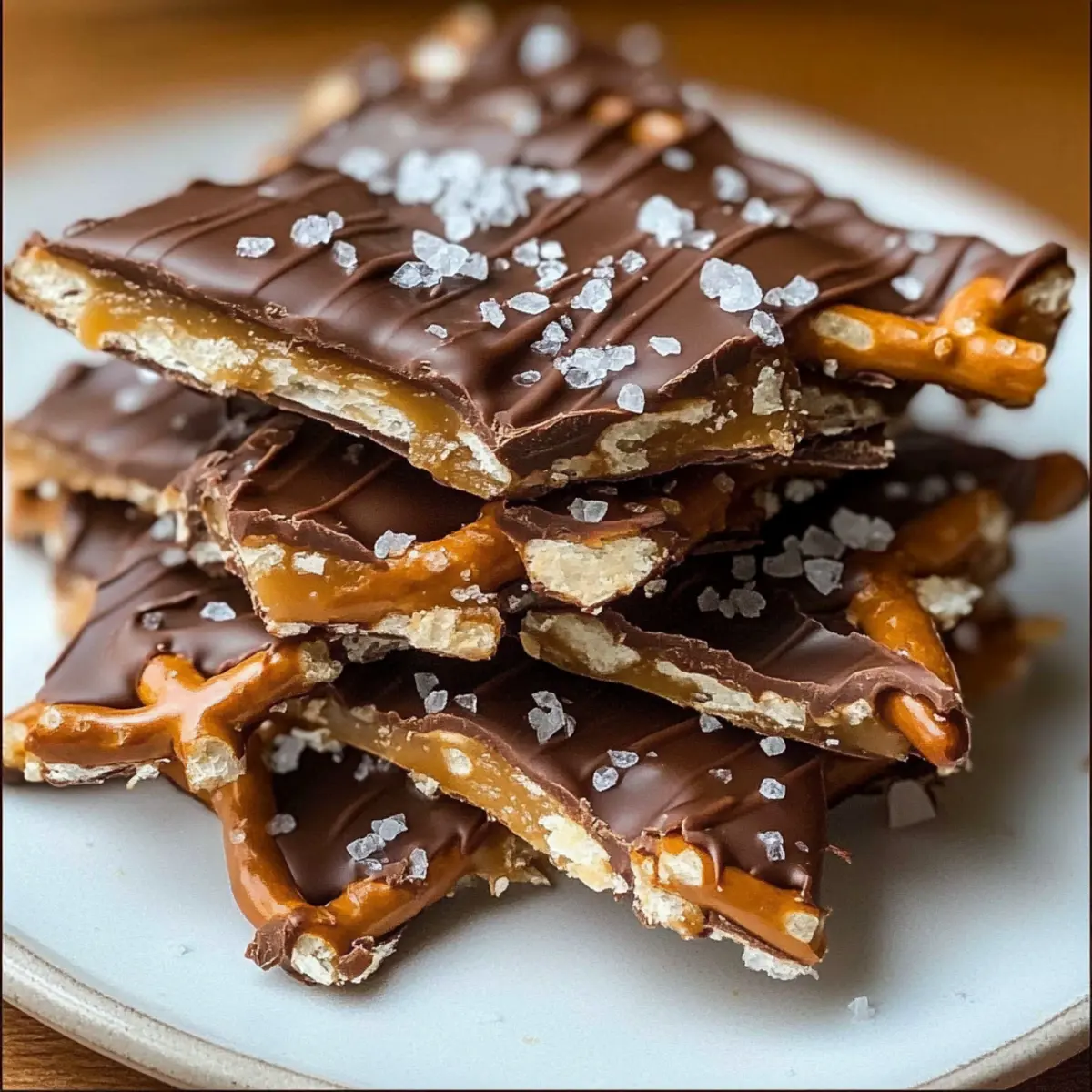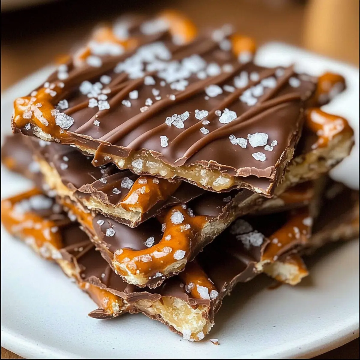 While the chocolate is still warm and slightly melty, sprinkle a generous amount of sea salt over the drizzled surface. This will enhance the flavors and create that signature sweet-salty balance that makes salted caramel pretzel bark so irresistible.