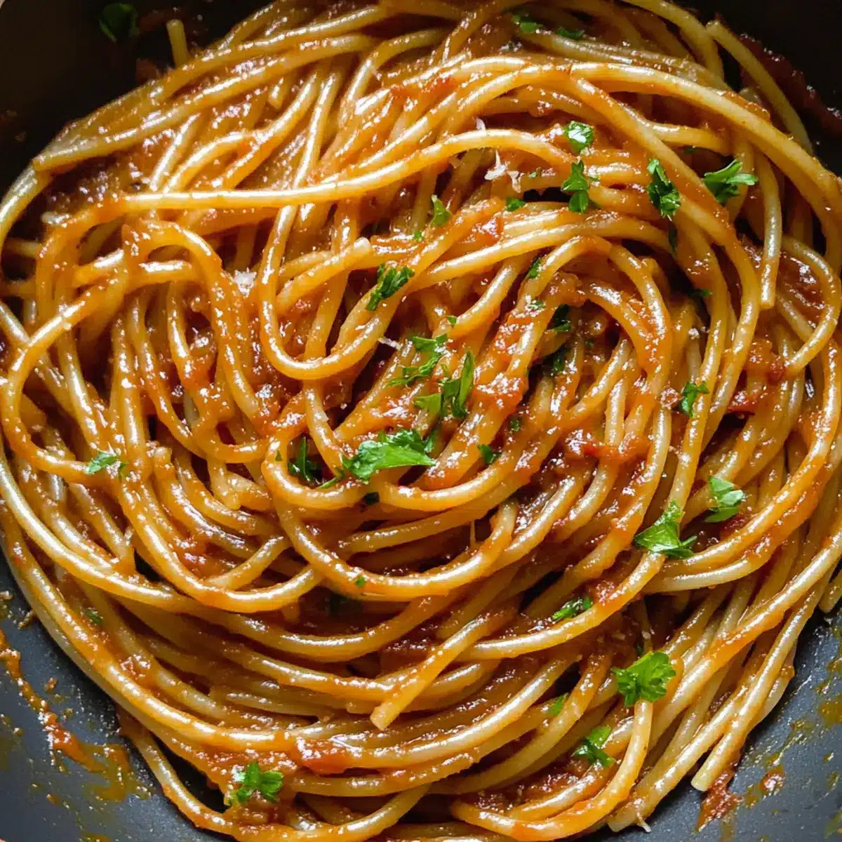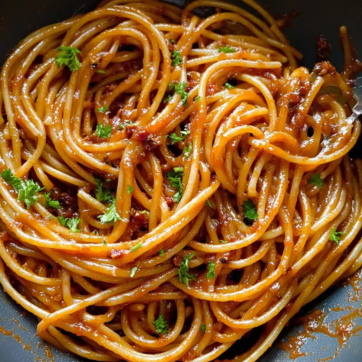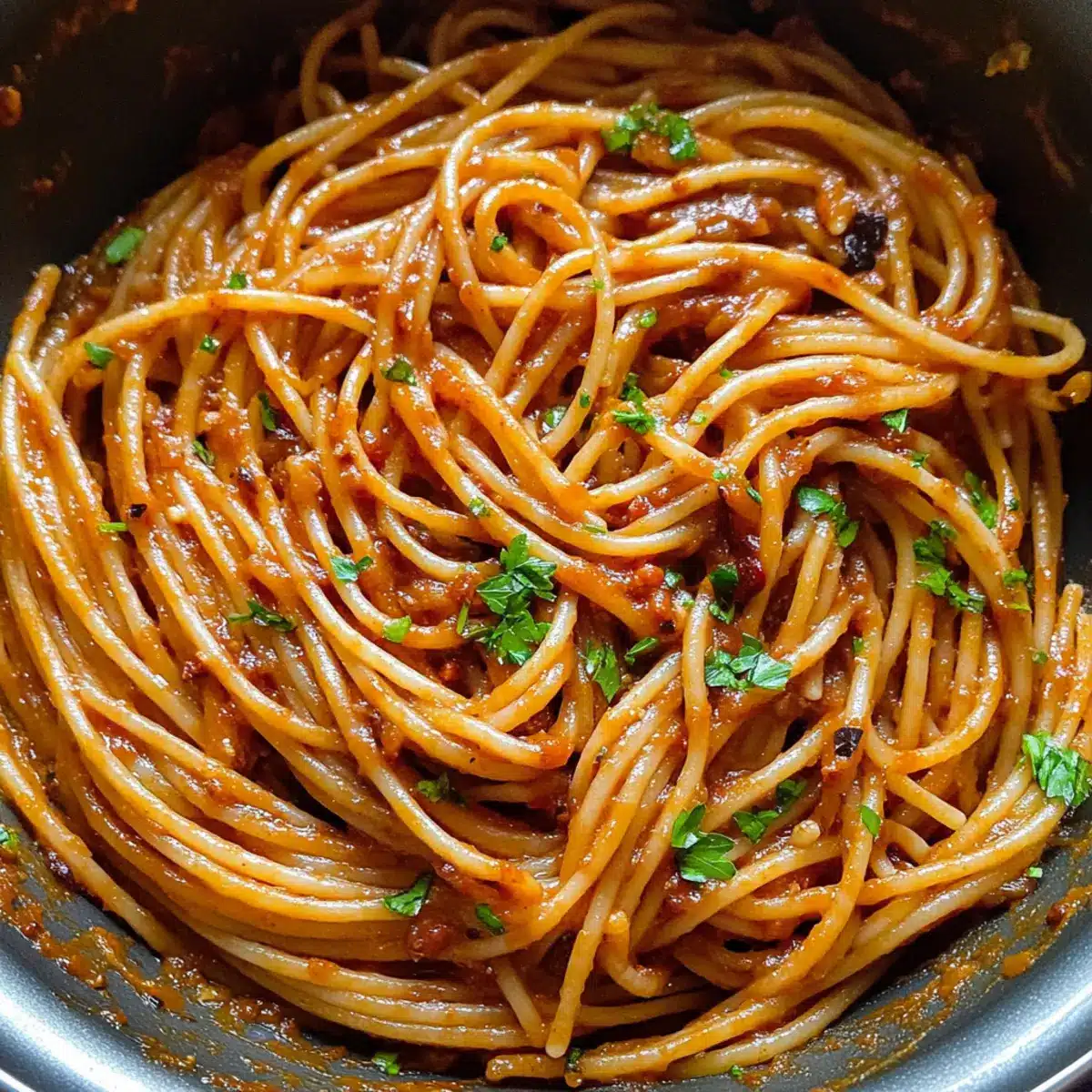Preparing your Spicy Spaghetti ahead of time is a game changer for busy weeknights! You can chop the onions, garlic, and parsley up to 24 hours in advance—just store them in an airtight container in the fridge to maintain their freshness. Additionally, you can make the chili onion crisp and store it for up to 3 days, enhancing its flavors while saving you precious cooking time. When you’re ready to serve, simply sauté the aromatics as instructed, cook the pasta, and follow the final steps to mix everything together. This way, your Spicy Spaghetti will still be just as delicious and vibrant, allowing you to enjoy restaurant-quality flavors with minimal effort!