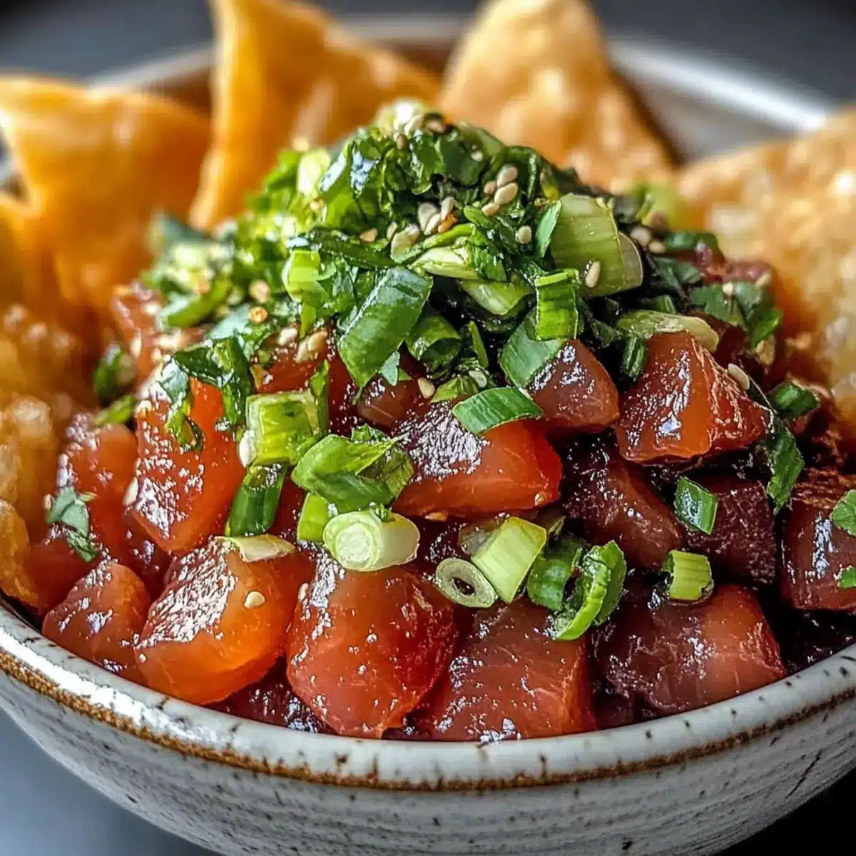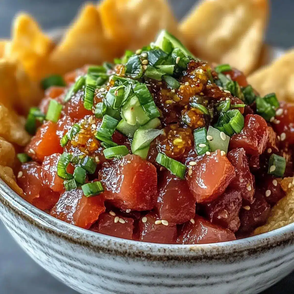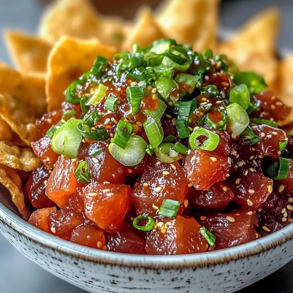 Delicious Spicy Tuna Tartare with Crispy Wonton Chips
