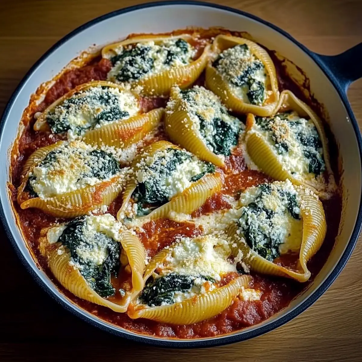 While assembling your dish, preheat the oven to 375°F (190°C). This temperature will ensure that your Spinach and Ricotta Stuffed Shells bake evenly and develop a perfectly golden topping.