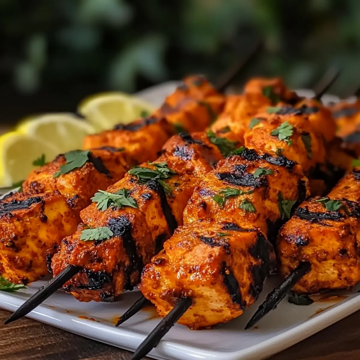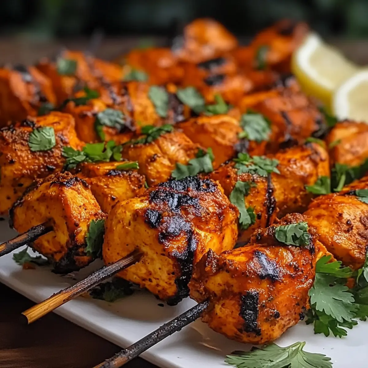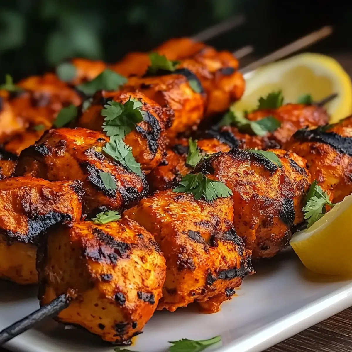 Once grilled to perfection, remove the Tandoori Chicken Tikka Skewers from the grill and let them rest for a few minutes. This allows the juices to redistribute, enhancing flavor and moisture. Serve the skewers garnished with fresh cilantro and lemon wedges for a bright, zesty finish that will elevate your dish and impress your guests.