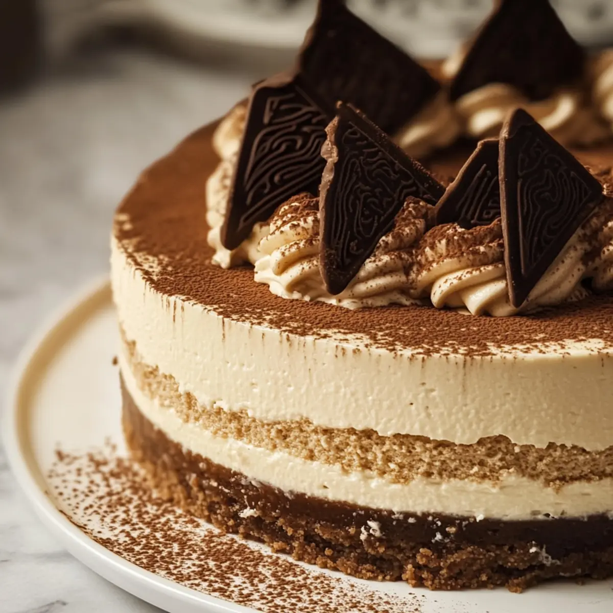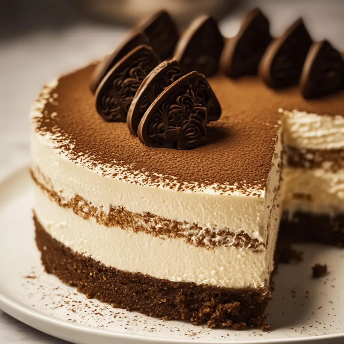 Before serving, carefully remove the cheesecake from the springform pan. Dust the top with high-quality cocoa powder for a traditional finish. You can also garnish with whipped cream or chocolate shavings for an extra touch of elegance.