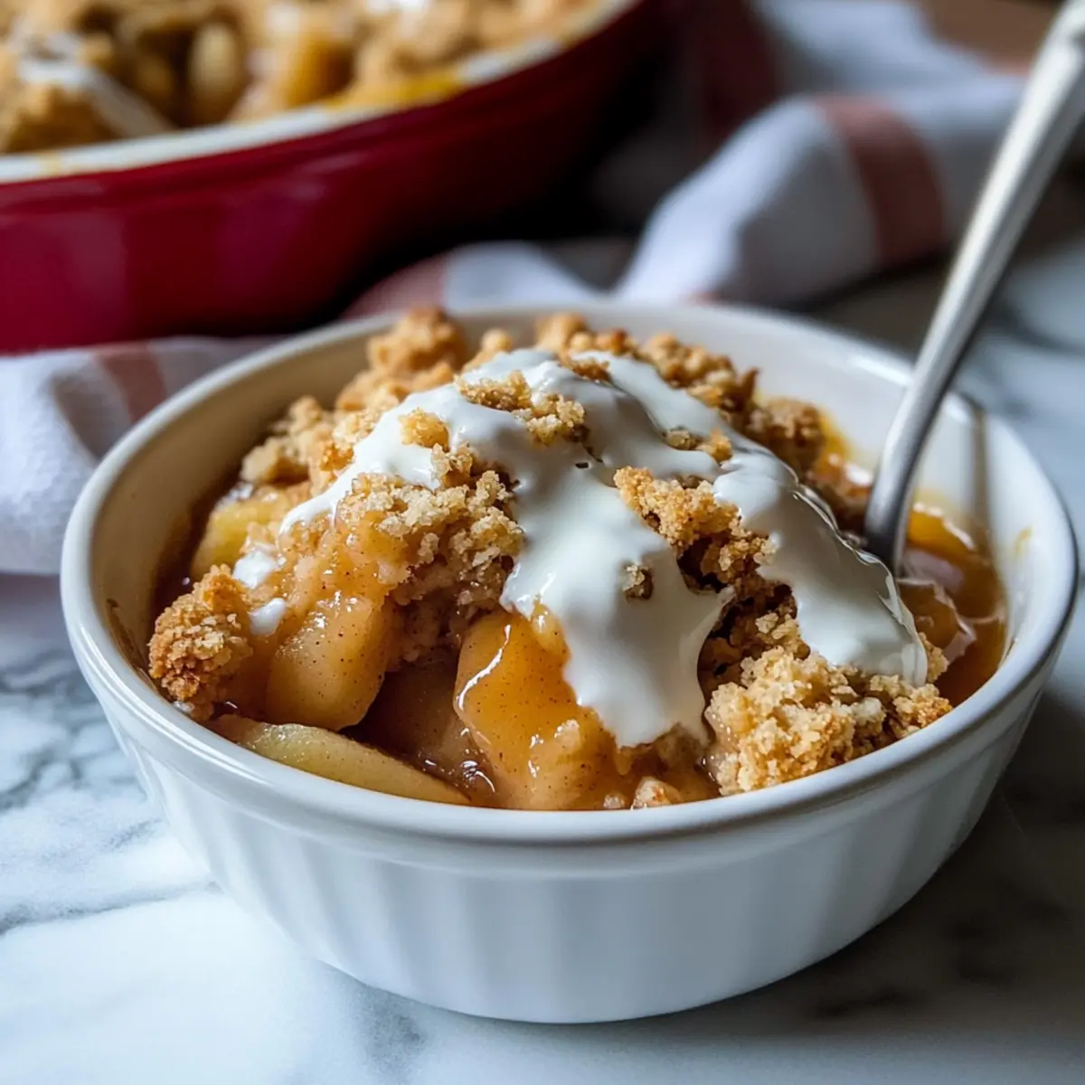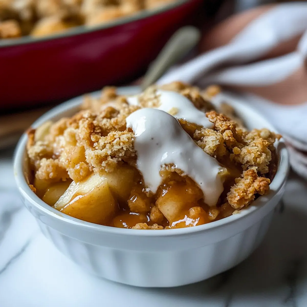 Fruit Medley: Swap a portion of the apples for pears or peaches to introduce delightful new flavor notes to your crisp. This twist can create a delightful seasonal variation!